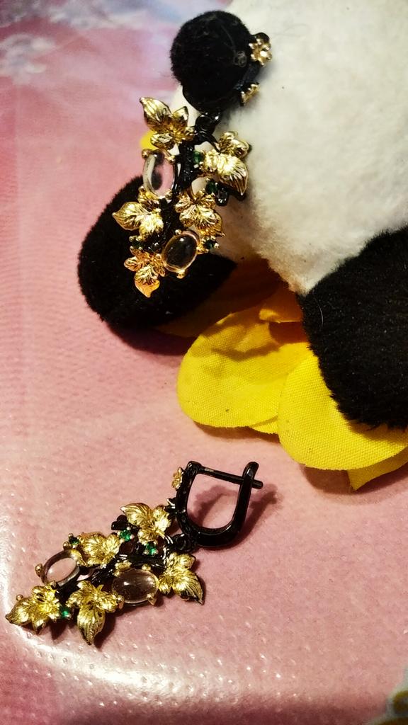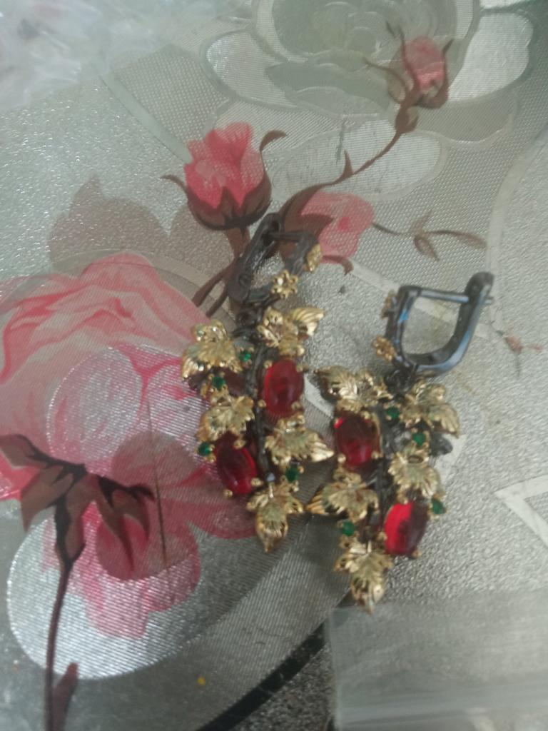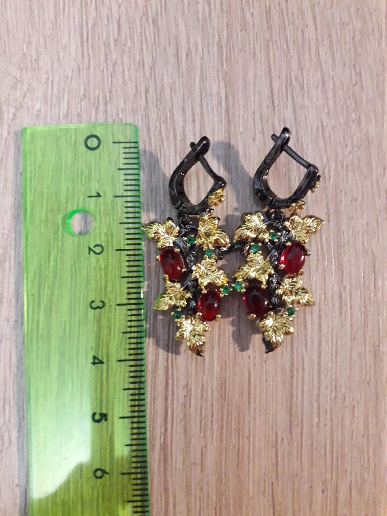 Elegant Black Gold Ruby Pendant Flower Leaf Earrings Crystal Gemstone Ladies Jewelry Earrings Silver Women for Earrings