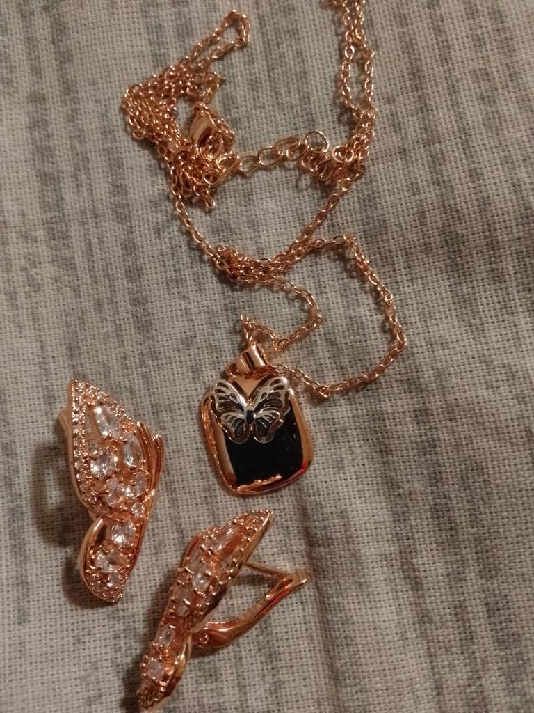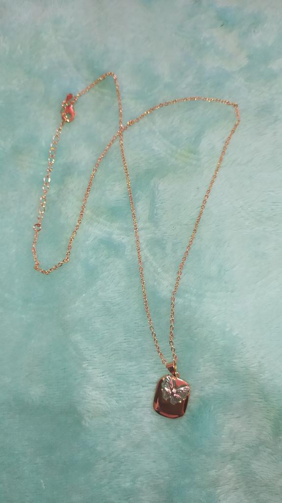 A very beautiful and stylish necklace with a butterfly pendant, light, looks good, I ordered a ring with a butterfly, the clasp is reliable, the chain is adjustable, thank you very much, I recommend the product for purchase