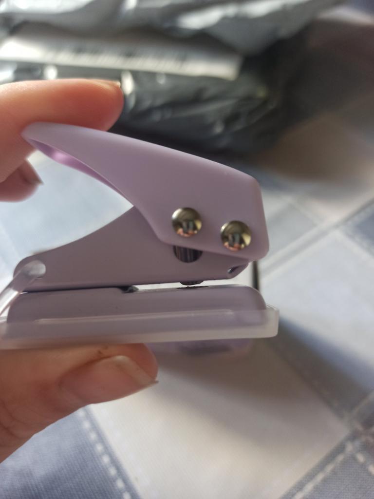 The manual hole puncher has arrived. It's so small, it's comfortable :) it's beautiful and punches well. Not for very thick cardboard or large amounts of paper.