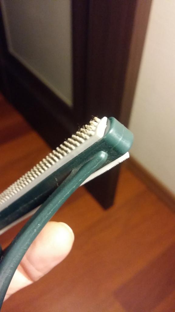 Disposable brush. Once the brush was cleaned from cat hair and all the teeth were worn off.