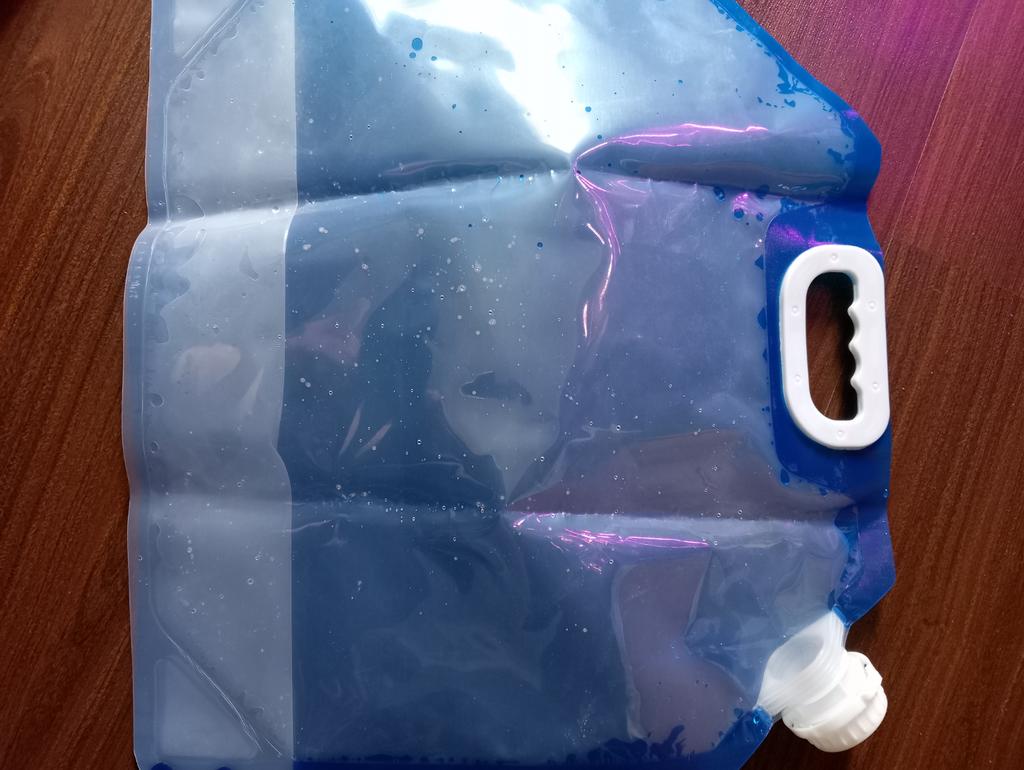 A great thing to go on a hike. It has a smell, the plastic is dense, 10 liters of tyutyu in tyutyu)))