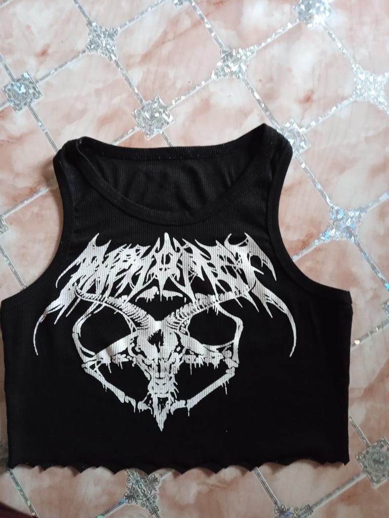 Gothic Knitted Punk Black Tank Tops Mall Goth Grunge Goat Print Harajuku Women Crop Tops Skinny Sleeveless Streetwear