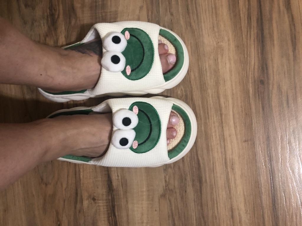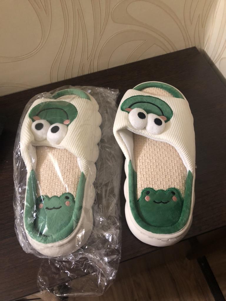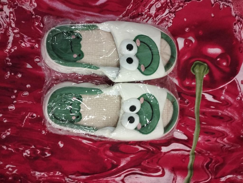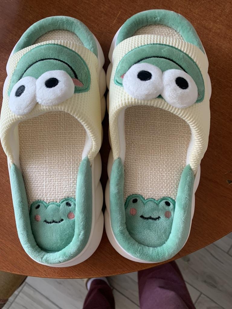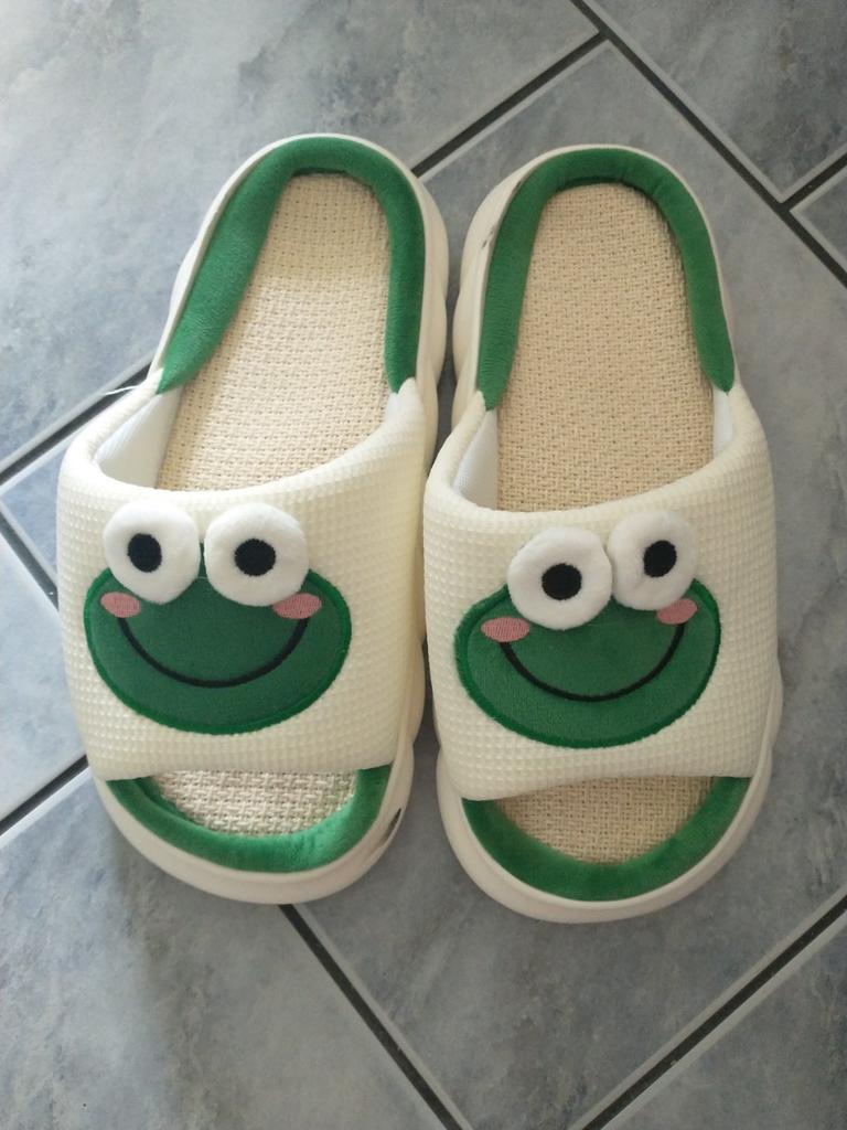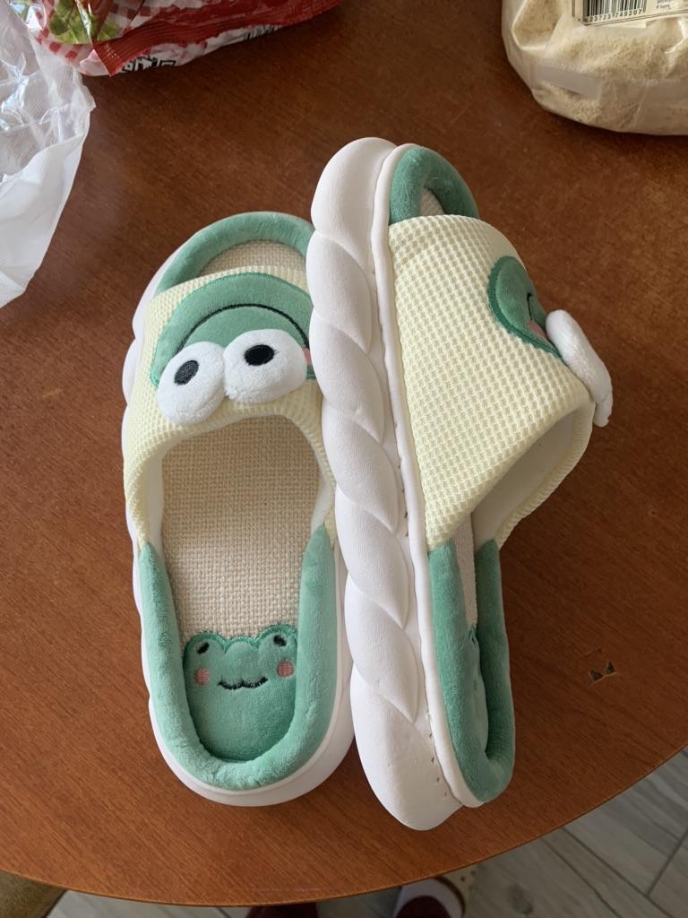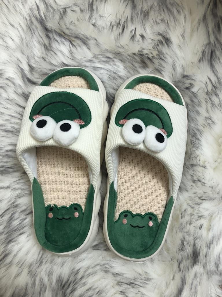 Lovely Frog Linen Slippers Women Couples Non Slip Thick Soled Spring Summer Cotton Linen Cool Slippers Home Slipper