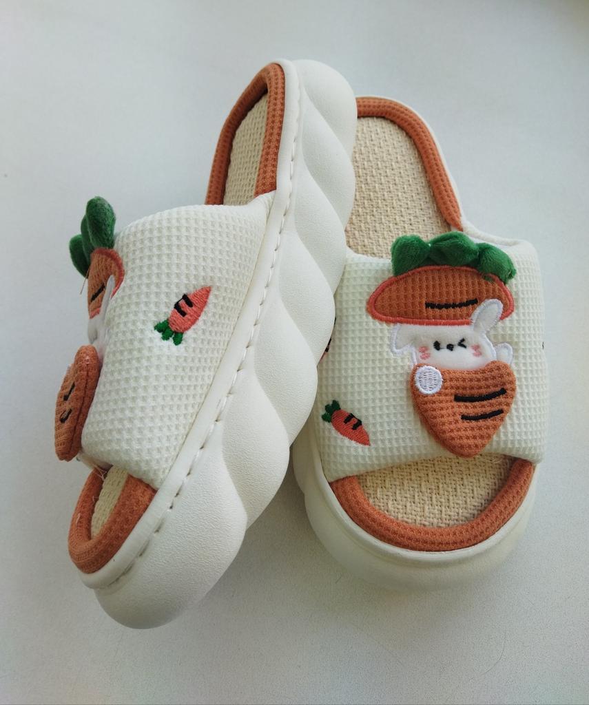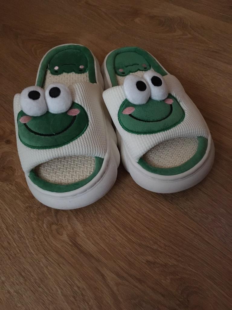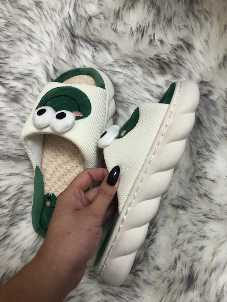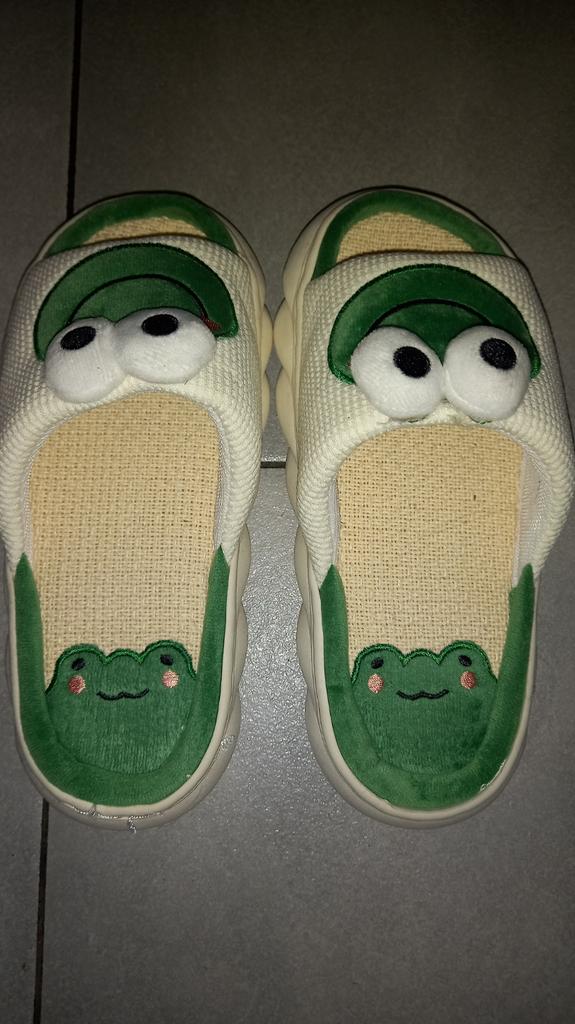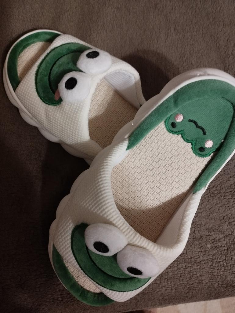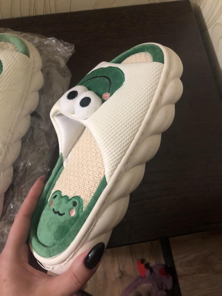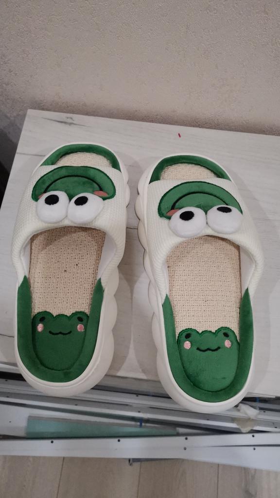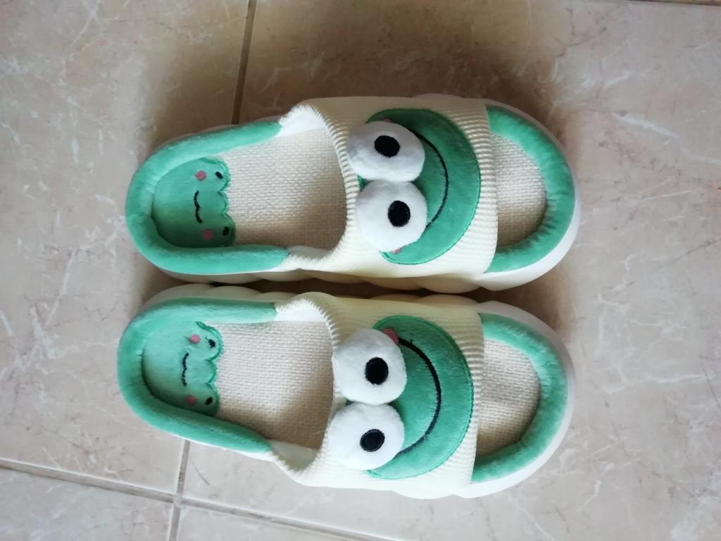 Lovely Frog Linen Slippers Women Couples Non Slip Thick Soled Spring Summer Cotton Linen Cool Slippers Home Slipper