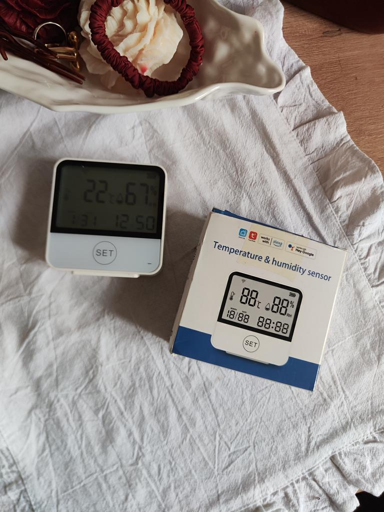 It is a temperature and humidity meter with a digital clock, with just a glance you will see the time, week, day, year, humidity and temperature. It is ideal to put in your living room, bedroom or on your desk. I recommend it for its quality.πππππππππ π¦Package Content: A temperature and humidity meter with digital clock. User manual. πPros: Delivery to Spain in 26 days. βοΈ Super well packed for the trip. Excellent presented in its box. With just a glance you will see the time, week, day, year, humidity and temperature.. Large LCD screen. WiFi connection. Smart sensors. Works with Tuya Smart App or Smart Life App. Voice control with Alexa and Hey Google. A battery icon is displayed on the screen to let you know when to change the batteries.. πCons: batteries not included. .