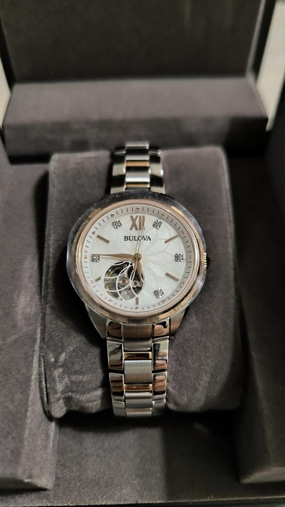 BULOVA Classic White Open Heart Dial Automatic 98P170 Women's Watch