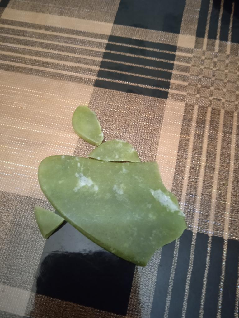 Arrived whole, stone is natural. Jade in color.