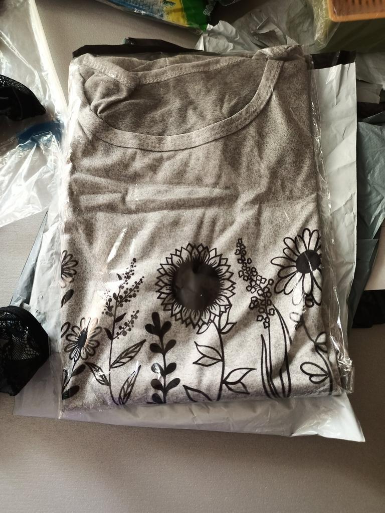 Plain women's t-shirts. Medium-thickness knitwear. The design is painted on. Pleasant to the touch. Did not fade after hand washing. No defects found.