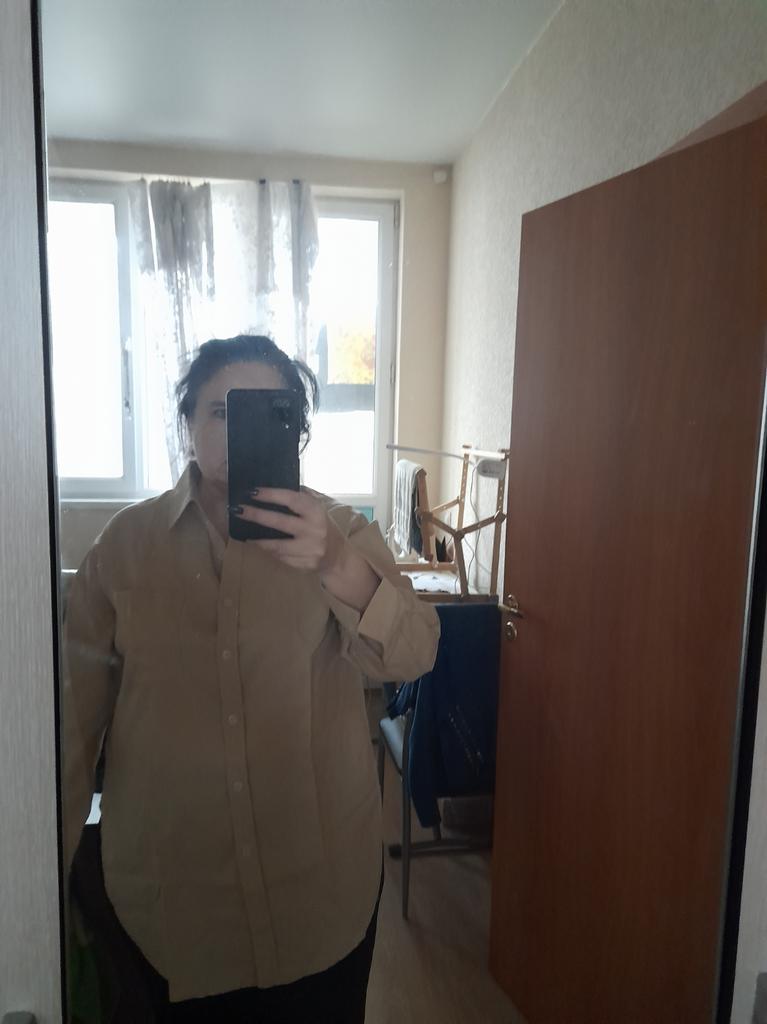 The shirt is very large and wide, the sleeves are longer than necessary. My size is 52, maybe size XL would have suited me. I made a mistake when choosing. The quality of the shirt is excellent, it is sewn well, without missing lines and hanging threads. Very nice fabric, but it wrinkles.
