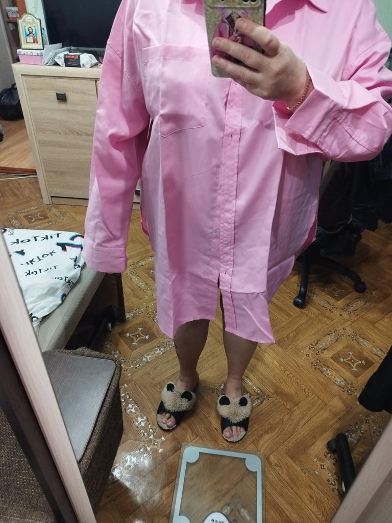 The shirt is huge, looks much simpler than in the photo, an ordinary cotton white thin shirt without any frills. Disappointed, expected a lot more.