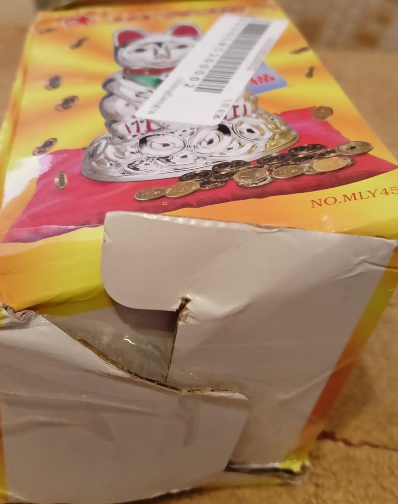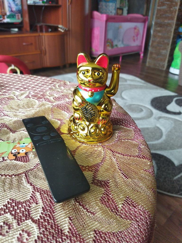 The cat is really handsome))) One finger battery, he waves his paw very actively.