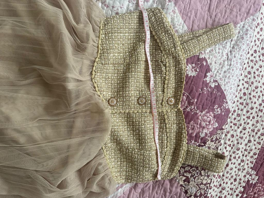 New Spring Autumn Spaghetti Strap Woolen Patchwork Mesh Tulles Midi Dress +Short Tweed Jacket Coat For Women 2 Pieces Set Outfits