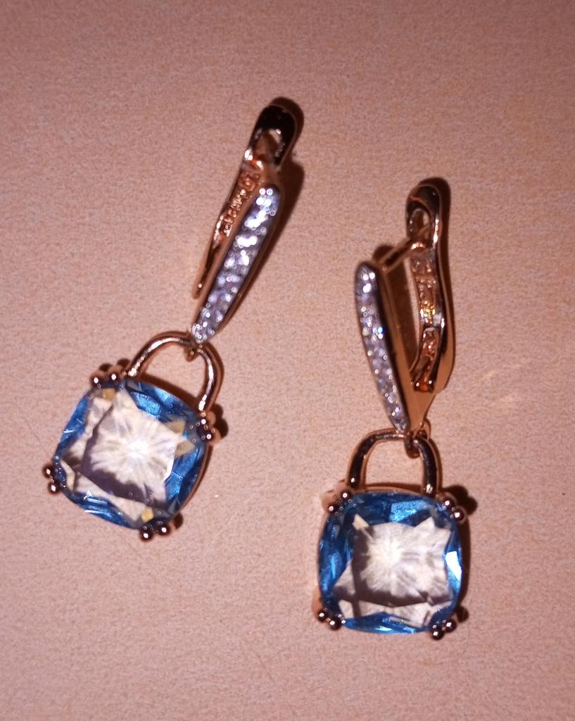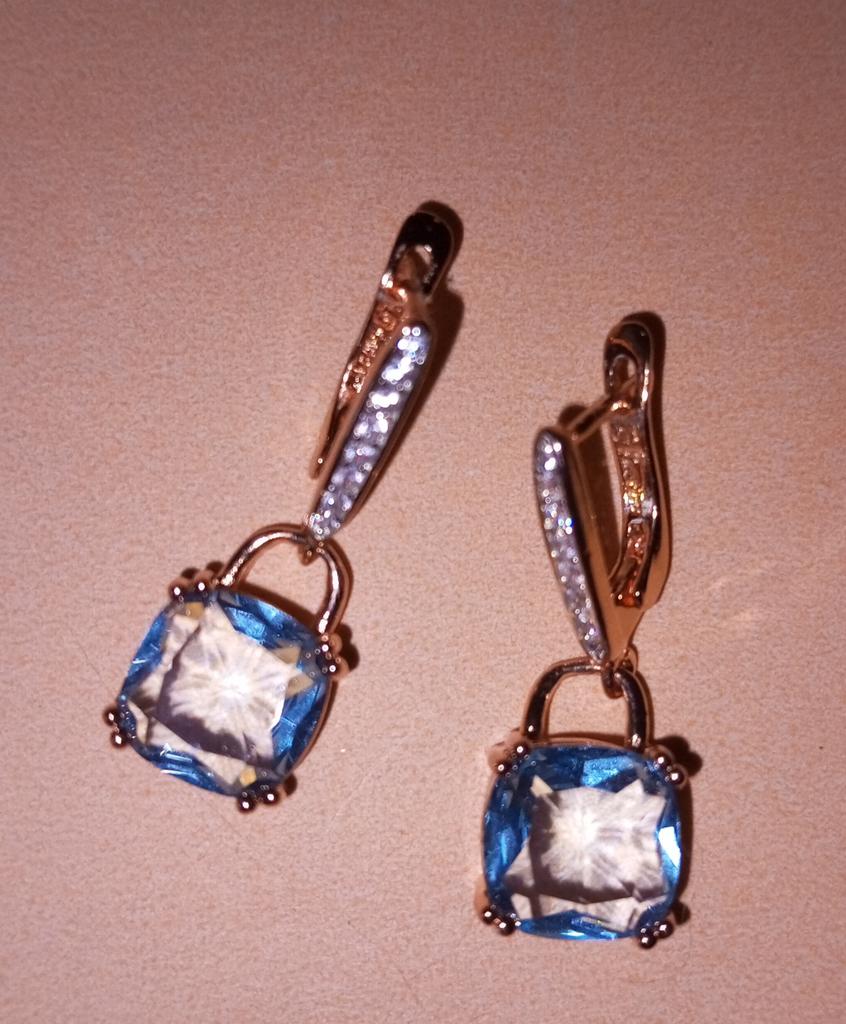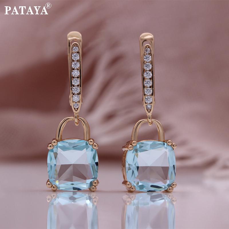 PATAYA Rose Gold Color Italian Craft Light Blue Artificial Zircon Earrings
