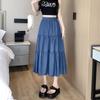 MOJTA Summer Women's High Waist Mid-length Casual A-line Pleated Skirt Loose Plus Size Skirt