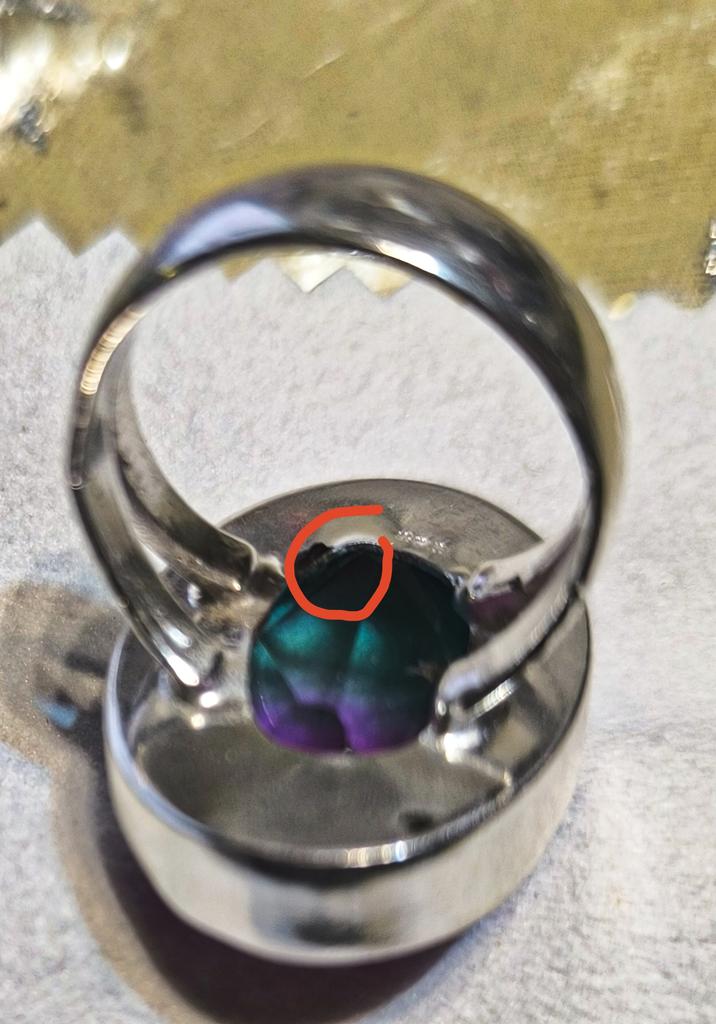 The quality is zero - this is not a piece of jewelry. Roughly cut with scissors from thin foil, the edges are not processed at all, soldered crookedly, there is a bubble on the side of the setting. The glass does not fit tightly to the setting at the bottom and the edge of the hole is not processed - it scratches the skin. How to arrange a return and get my money back?