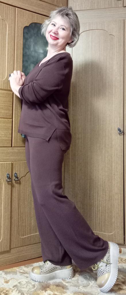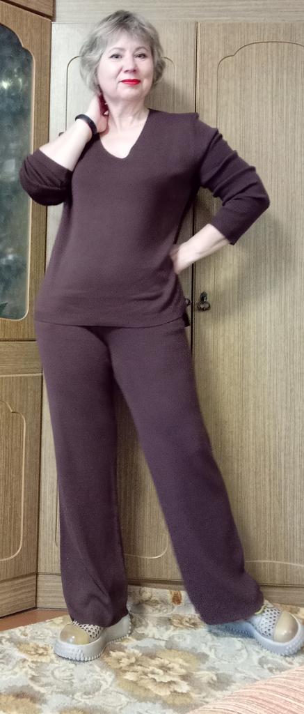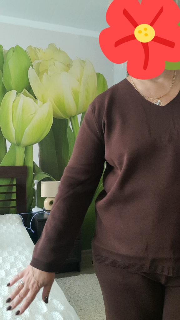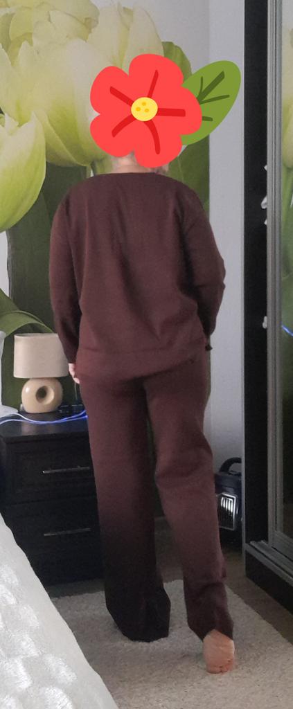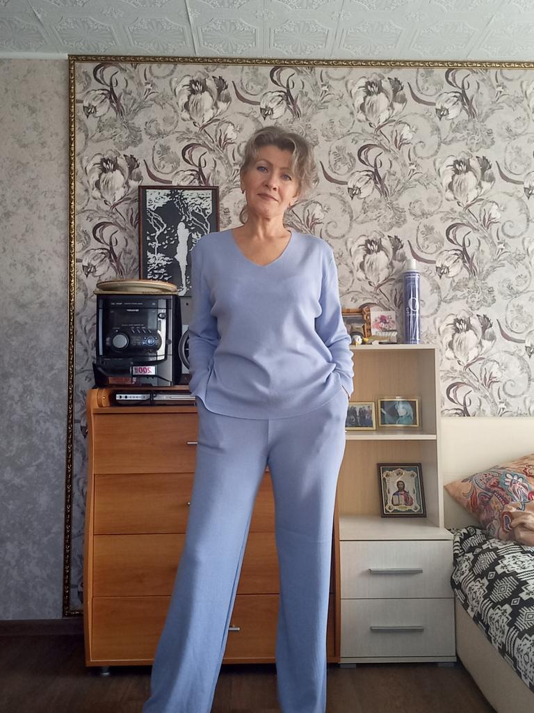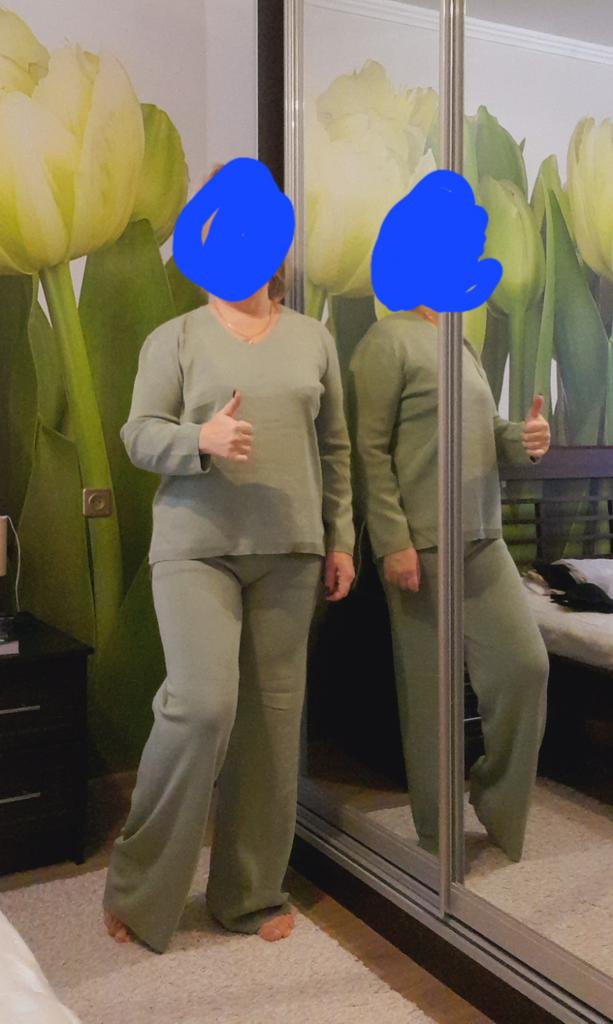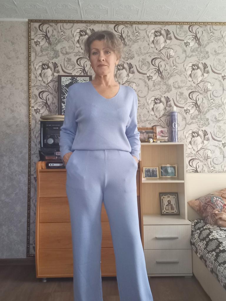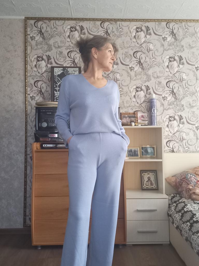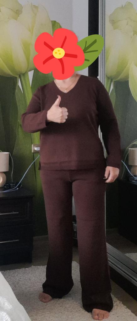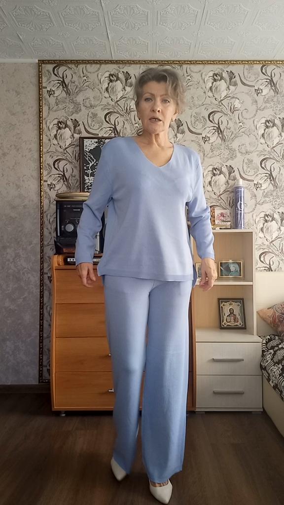 TWO-PIECE PANTS SET๐๐ ๐ ๐Delivery time ๐: 3 weeks to Germany. ๐Scope of delivery ๐: The scope of delivery includes a pair of pants, consisting of 2 parts, ๐๐ in the appropriate size and color. The SET is available in 4 colors to choose from. (Blue, Green, Apricot, Dark Brown). The color blue looks more than purple though. Actually I ordered this suit because of this beautiful color and I am very satisfied with it. The color is exactly as pictured, even though the description says "blue". Maybe it was a mistake. It is available in one size. I ordered it in blue and the set ๐๐ fits me great! I usually wear size 36-38. I weigh 55kg over 167cm. The size of the suit is one size. (Chest 108cm, Waist-60cm). The top has a V-neck, which looks super nice! ๐Quality ๐: The set is of excellent quality, casual and opaque. , with wide pants. About the material composition: Unfortunately I didn't find a label, but you can understand that the fabric is viscose, although the manufacturer's description says "polyester".. โ ๏ธIn summary, it can be said that it is a beautiful two-piece suit ๐๐งฅ that is perfect for spring, autumn or winter. ๐๐๐ Thank you Joom and the seller! 5 Stars! ๐ I am happy to recommend the product!๐๐๐
