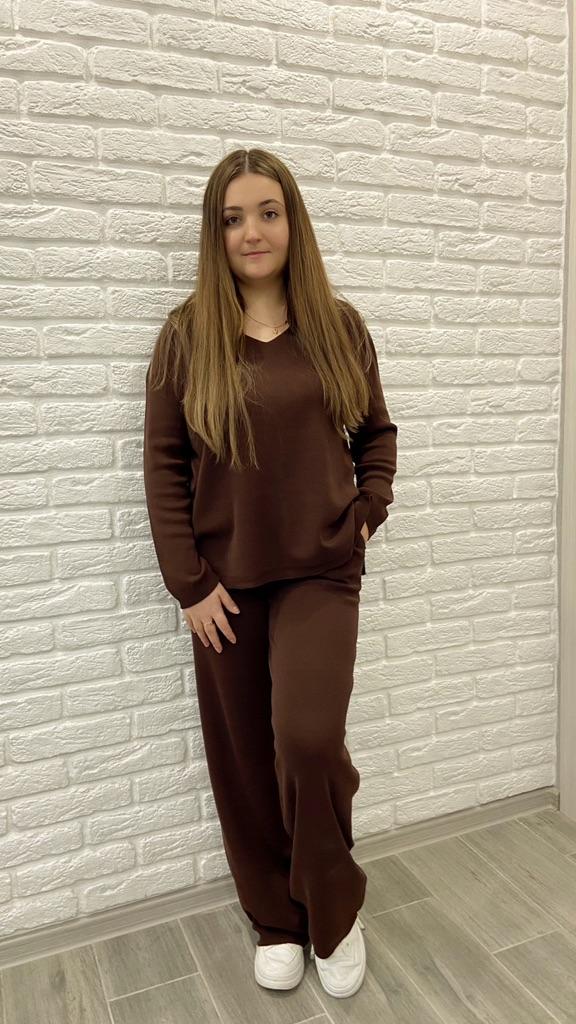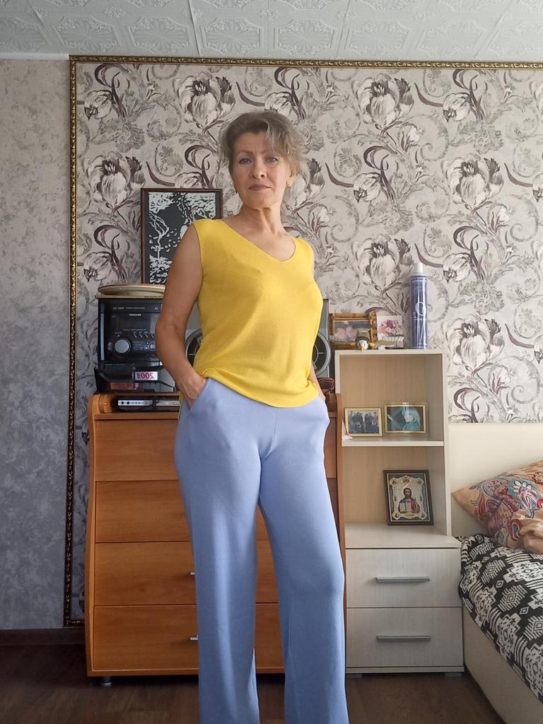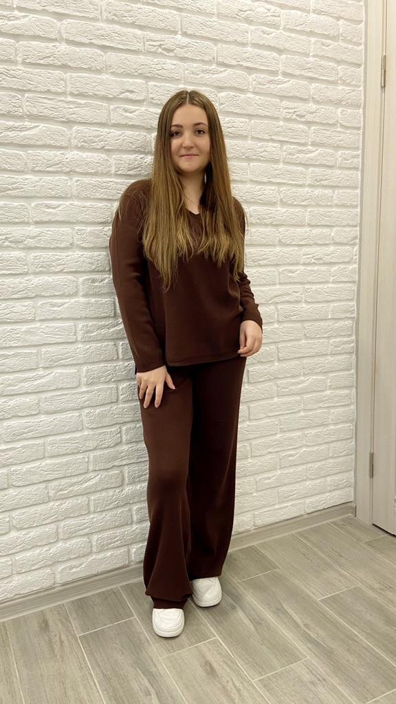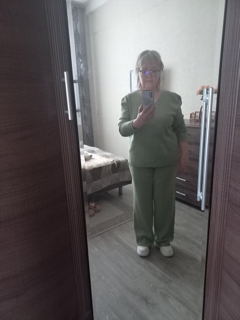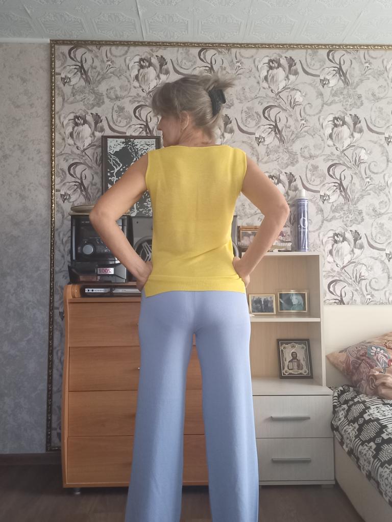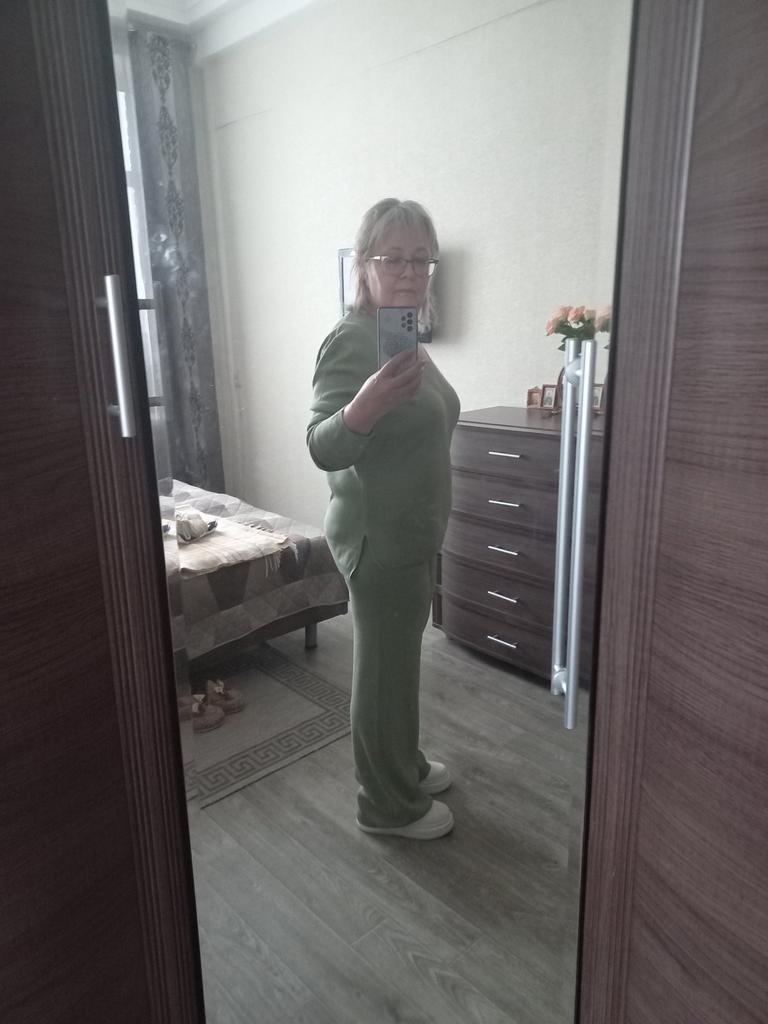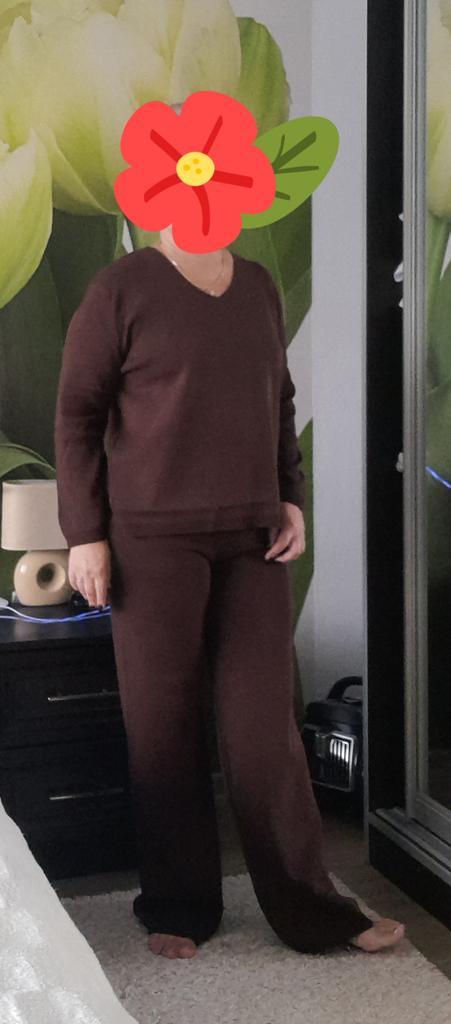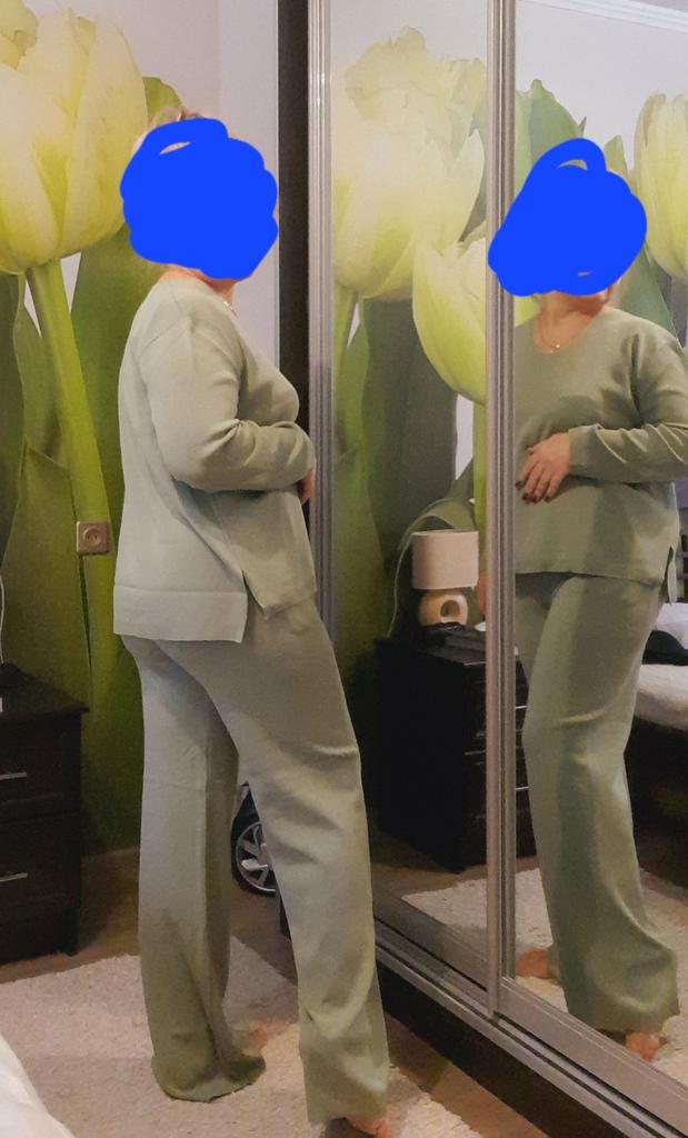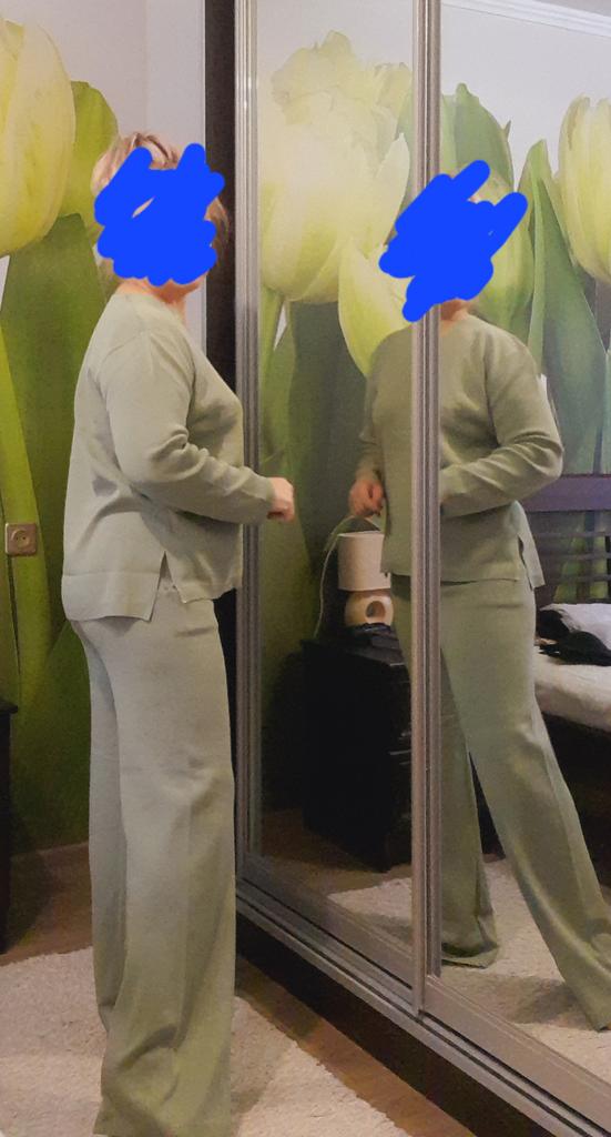 TWO-PIECE PANTS SET๐๐ ๐ ๐Delivery time ๐: 3 weeks to Germany. ๐Scope of delivery ๐: The scope of delivery includes a pair of pants, consisting of 2 parts, ๐๐ in the appropriate size and color. The SET is available in 4 colors to choose from. (Blue, Green, Apricot, Dark Brown). The color blue looks more than purple though. Actually I ordered this suit because of this beautiful color and I am very satisfied with it. The color is exactly as pictured, even though the description says "blue". Maybe it was a mistake. It is available in one size. I ordered it in blue and the set ๐๐ fits me great! I usually wear size 36-38. I weigh 55kg over 167cm. The size of the suit is one size. (Chest 108cm, Waist-60cm). The top has a V-neck, which looks super nice! ๐Quality ๐: The set is of excellent quality, casual and opaque. , with wide pants. About the material composition: Unfortunately I didn't find a label, but you can understand that the fabric is viscose, although the manufacturer's description says "polyester".. โ ๏ธIn summary, it can be said that it is a beautiful two-piece suit ๐๐งฅ that is perfect for spring, autumn or winter. ๐๐๐ Thank you Joom and the seller! 5 Stars! ๐ I am happy to recommend the product!๐๐๐