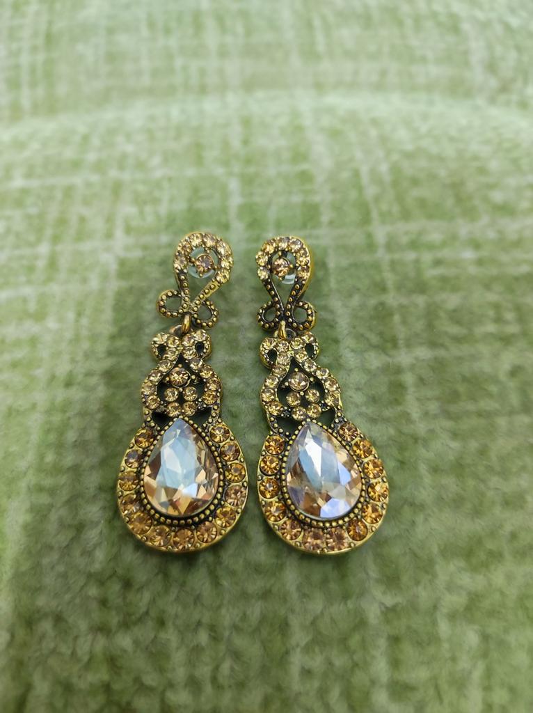 Retro Crystal Colored Gemstone Earrings, Fashionable And Versatile Ladies European And American Earrings