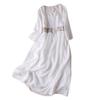Introducing our midi dress, a perfect blend of comfort and style. This round-neck long dress features a solid color loose cut and splicing embroidery design, giving it a simple yet fashionable look.