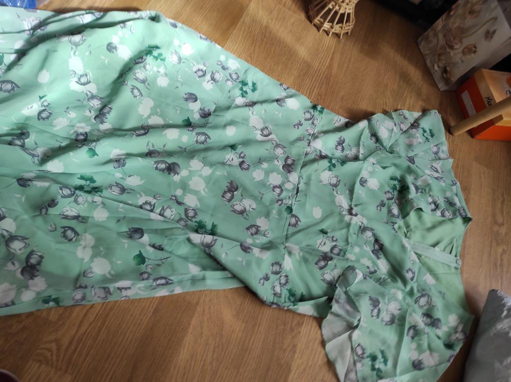 The fabric is good, but the right side of the neckline of the chiffon dress protrudes slightly, apparently one side is cut using uneven fabric. The staple dresses are of good quality, but if the dress had a zipper sewn into the back, it would not bulge on the figure. It turns out that in both cases the cut of the dress is not very well thought out. although everything is sewn neatly and the fabric is good. Thank you. But you will have to adjust it or wear it only at home.