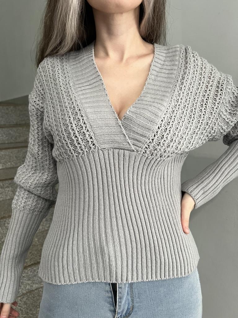 Sweater with deep low-cut neck Material is so pleasant to the body. On the parameters 84-60-85, height 167, size S sat a bit oversize. Details: -the sleeves are long enough -the neck is quite open, you can wear it with open shoulder; Can be combined with shorts, jeans,skirts . Good quality ! I really recommend it.