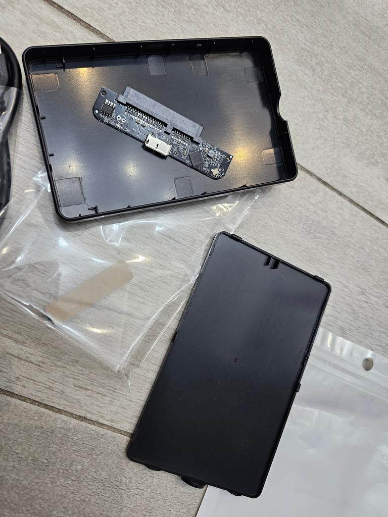 It works as intended. Easy to open and put hdd or ssd. Very useful product. Comes with a cable.