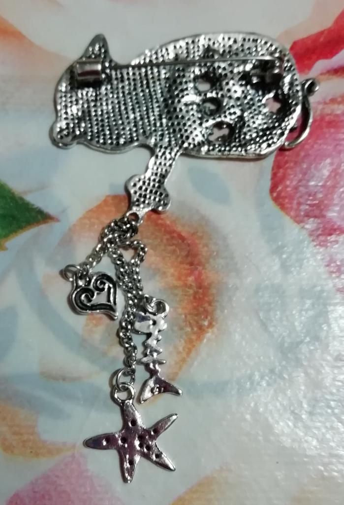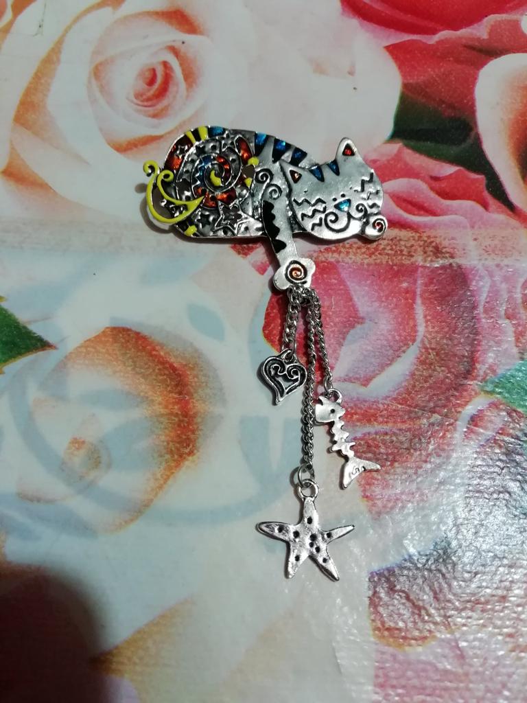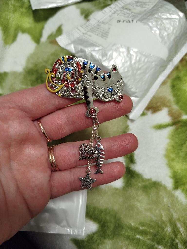 The brooch is beautiful, modern and of quality. Although it did NOT arrive exactly as in the photo, it only had a bell hanging on it, but I made a fix for it, you'll see, and it looks great. π