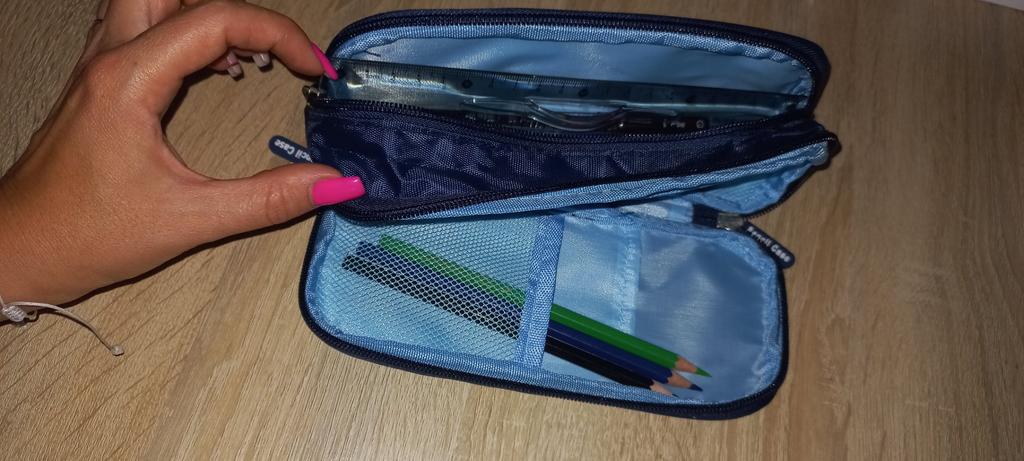 I bought 2 pencil cases of different colors right away, just in case one gets lost - my son is a scatterbrain, often loses things. Regarding the pencil case itself: convenient 2 compartments, zippers don't get stuck, the color is just right so that it won't show if it gets dirty. But the fabric itself is such that it doesn't collect dirt.
