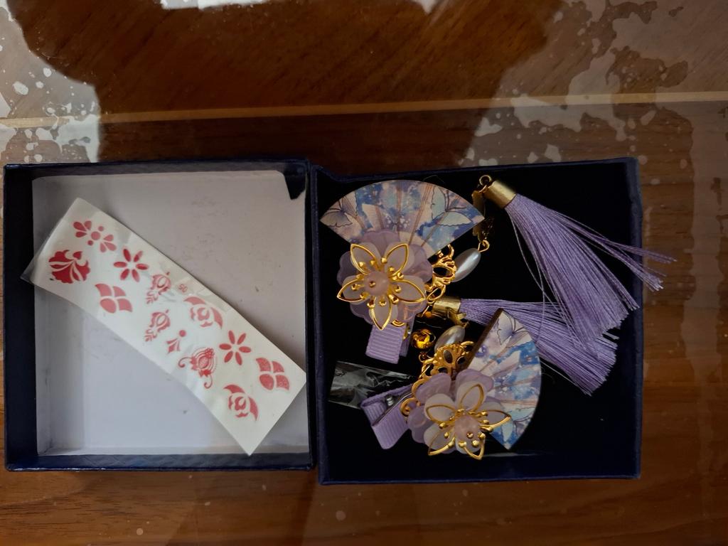 Genshin Impact Raiden Shogun Japanese Style Tassel Bead Hairpin Handmade Kimono Cos Flower Fan-shaped Hair Clip Prop Accessories