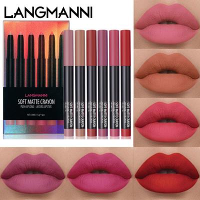 Langmanni Matte 6-color Bullet Lipstick Set Mist Top Waterproof Moisturizing Matte Light Speed Dry Lipstick Gift Box Makeup