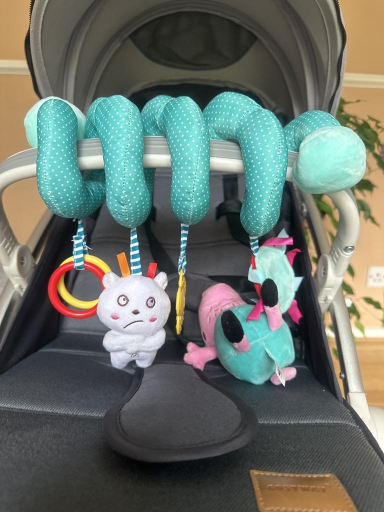 Hanging Car Seat Toys, Baby Rattle Toy Infant Crib Toy Baby Activity Spiral Plush Toys for Stroller Wrap Around Hanging Toy for Boys Girls 0-36 Months