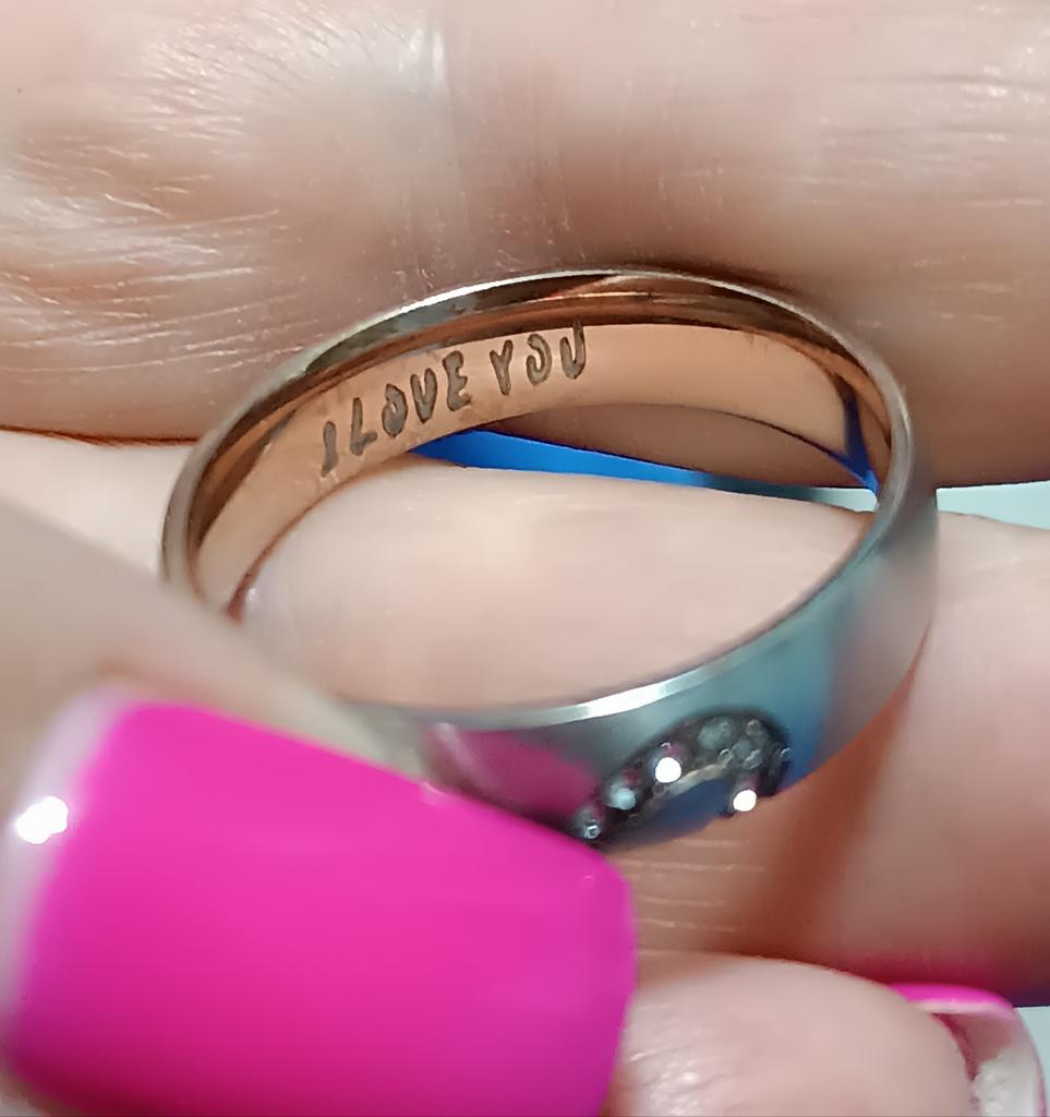 Love-shaped Titanium Steel Ring I LOVE YOU Zircon-set Couple Ring