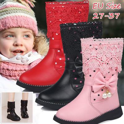Autumn Winter New Black Kids Boots Girls Boots Children High Bow Tie Shoes Girls Princess Boots Big Kids Shoes