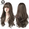 7JHH WIGS Popular Brown Ash Long Deep Wave Hair Lolita Wigs With Bangs Synthetic Wig For Women Fashion Thick Curls Wigs Girl