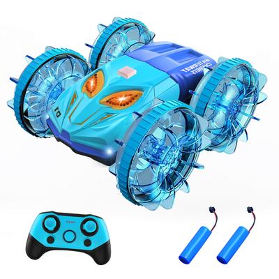 WEECOC RC Boat, Amphibious Stunt Car, High Speed, 4-Wheel Drive, 360-Degree Rotation, USB Rechargeable, Shockproof, Kids Gift (Blue)