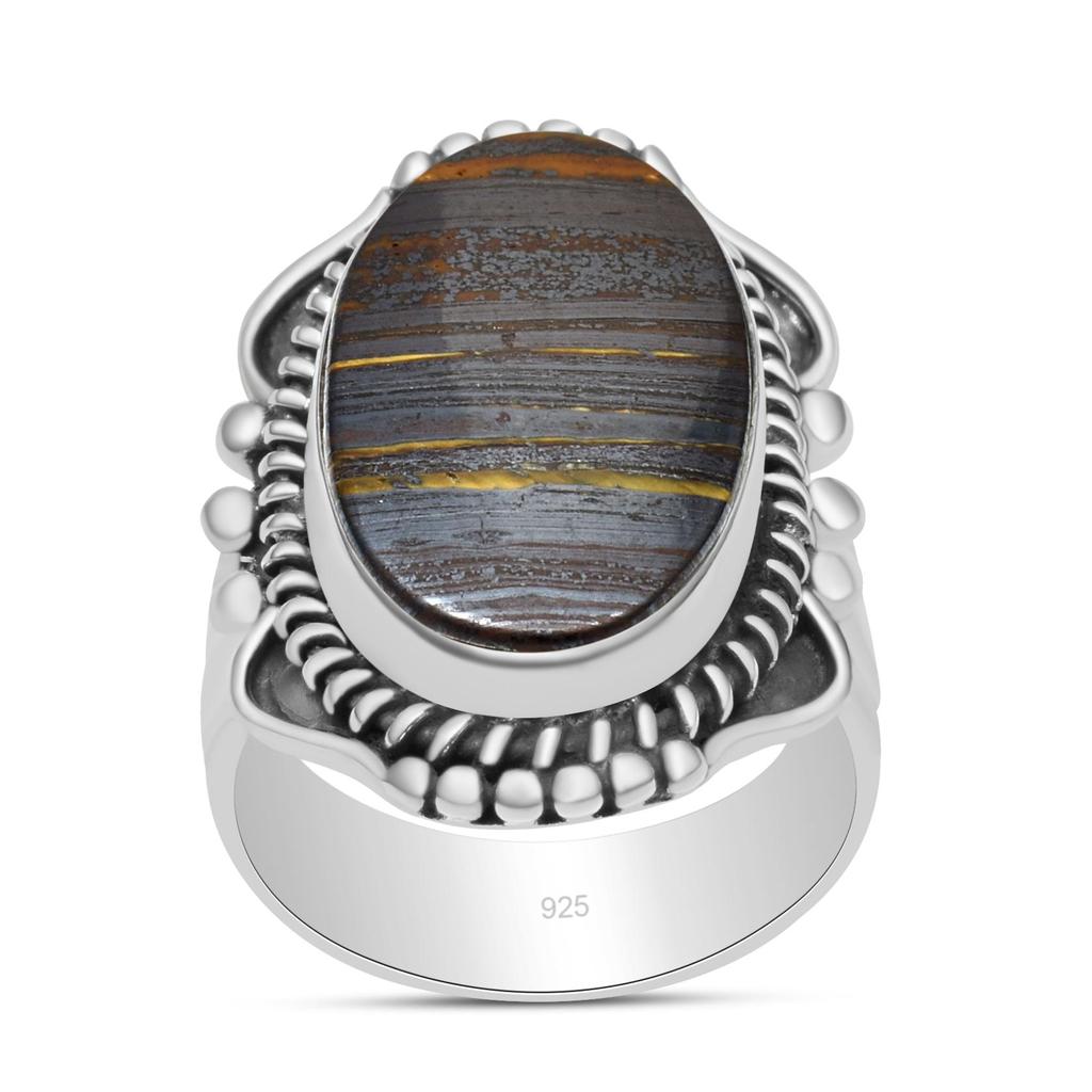 Handmade Iron Tiger's Eye Gemstone Silver Ring