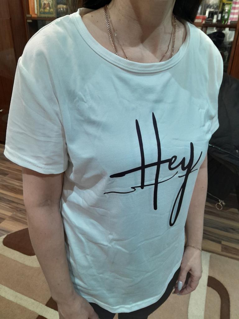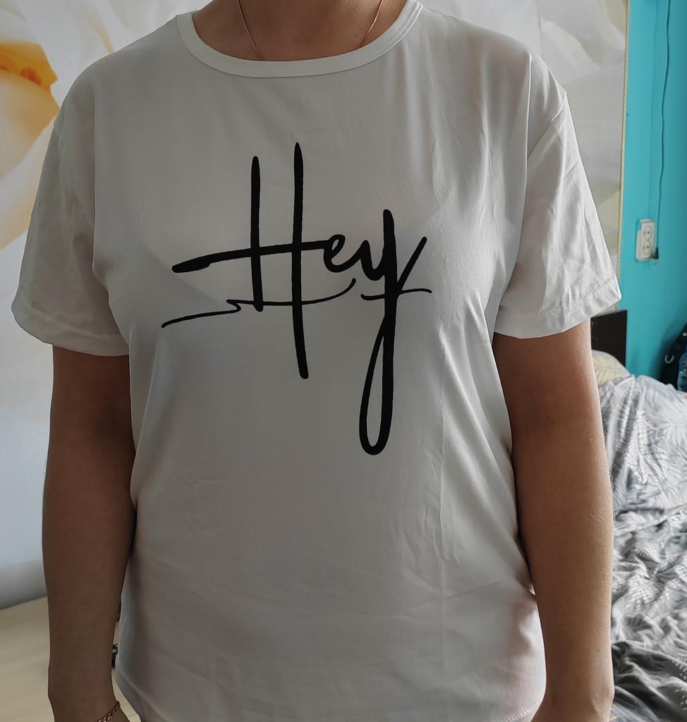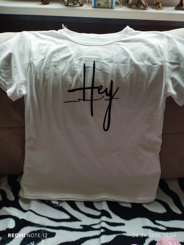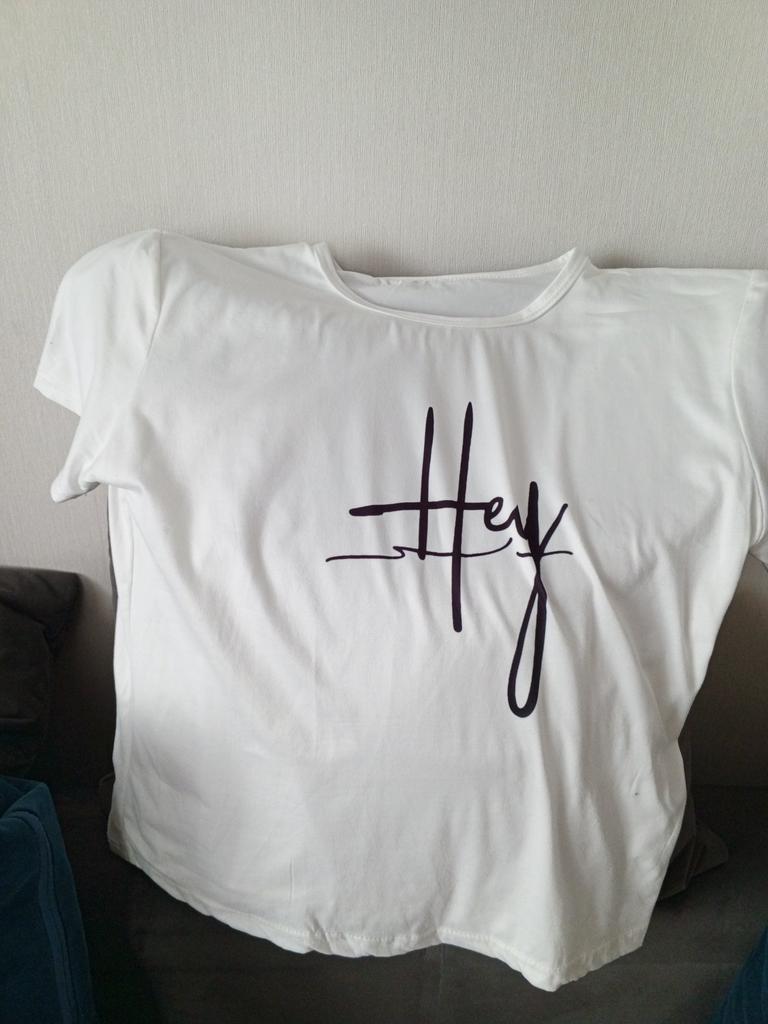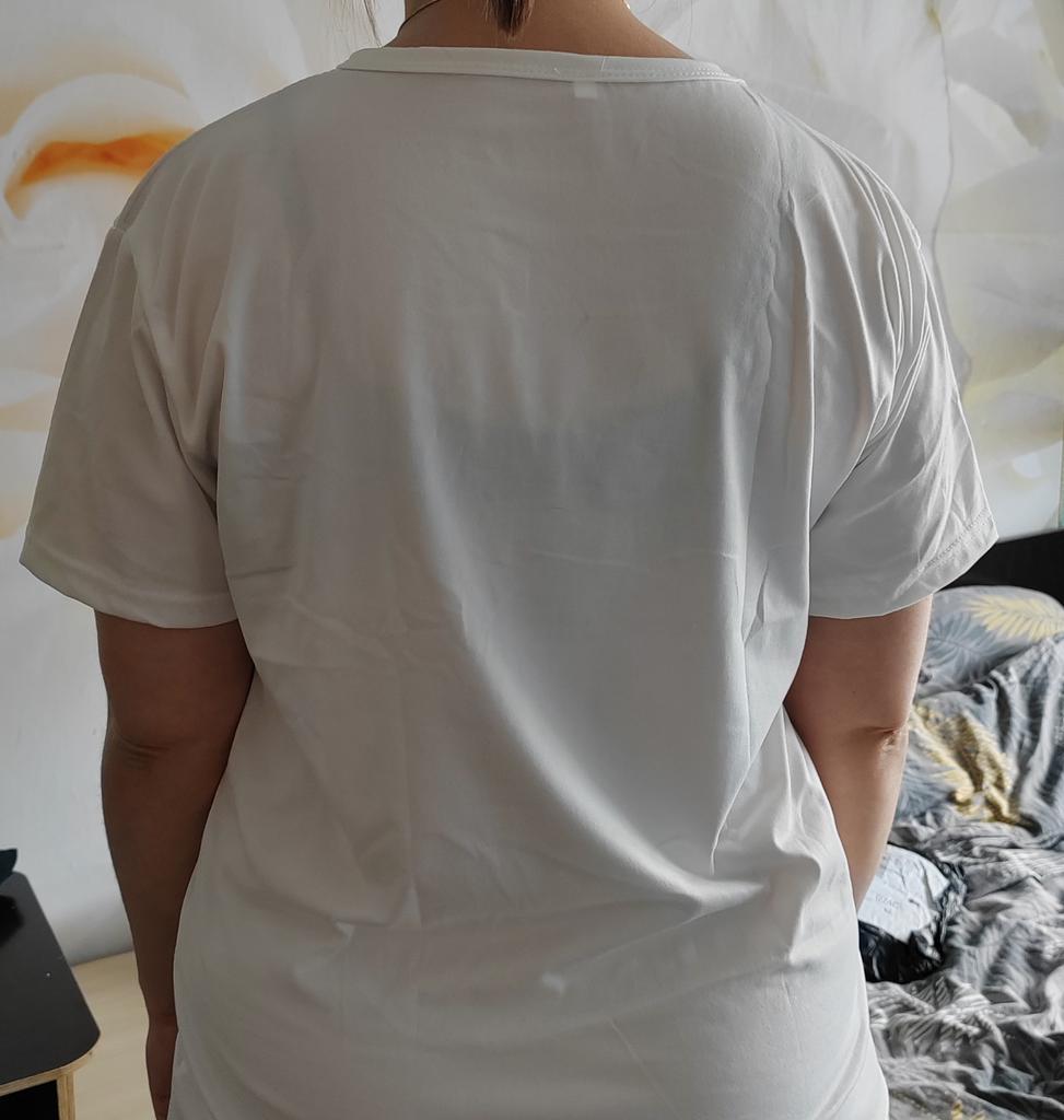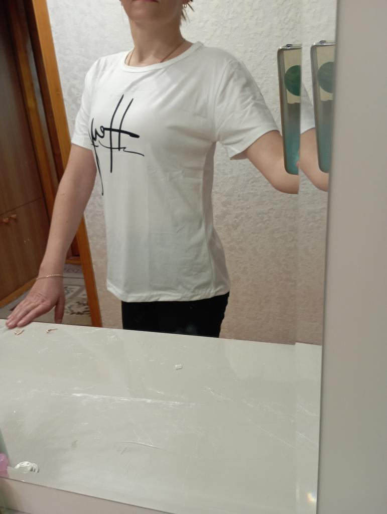 Well, it matches the photo - that is, it is white, yes, the quality is not bad, yes, but the length and shape are not the same, something like the photo. Short unfashionable T-shirt, wear it at home