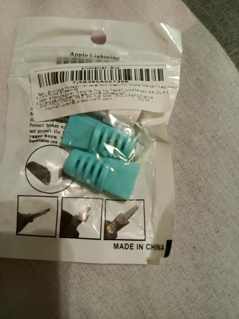 Silicone things, pleasant to the touch. But it doesn't fit the cord from the charger because it's a bit thick. But I put it on anyway. They're more suitable for thin cords.
