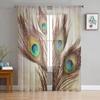 Peacock Feather Elegant White Tulle Curtains for Living Room Bedroom Decor Chiffon Sheer Voile Kitchen Window Curtain