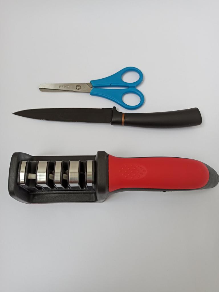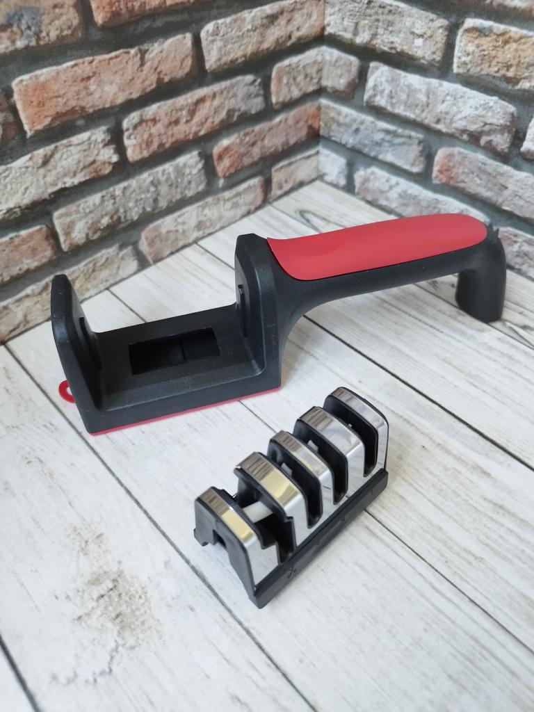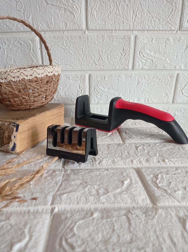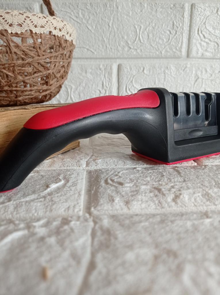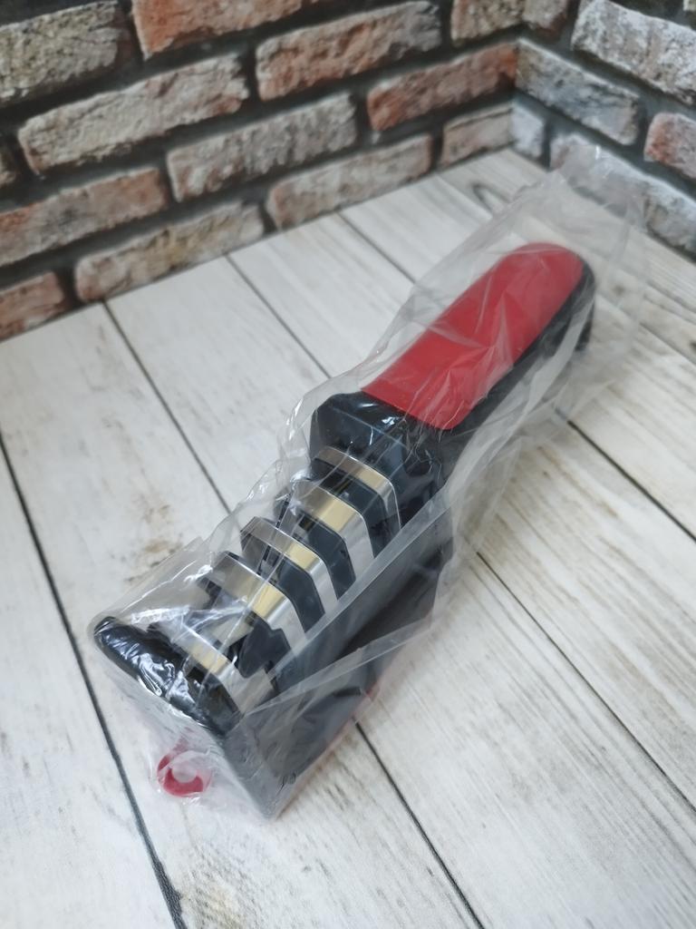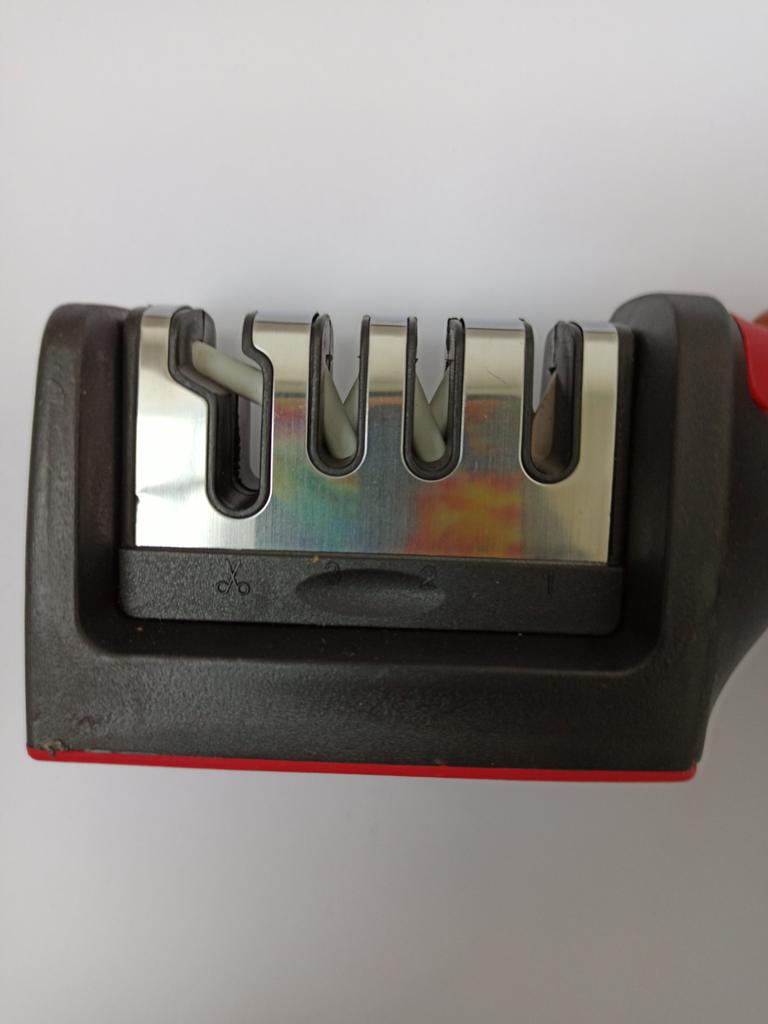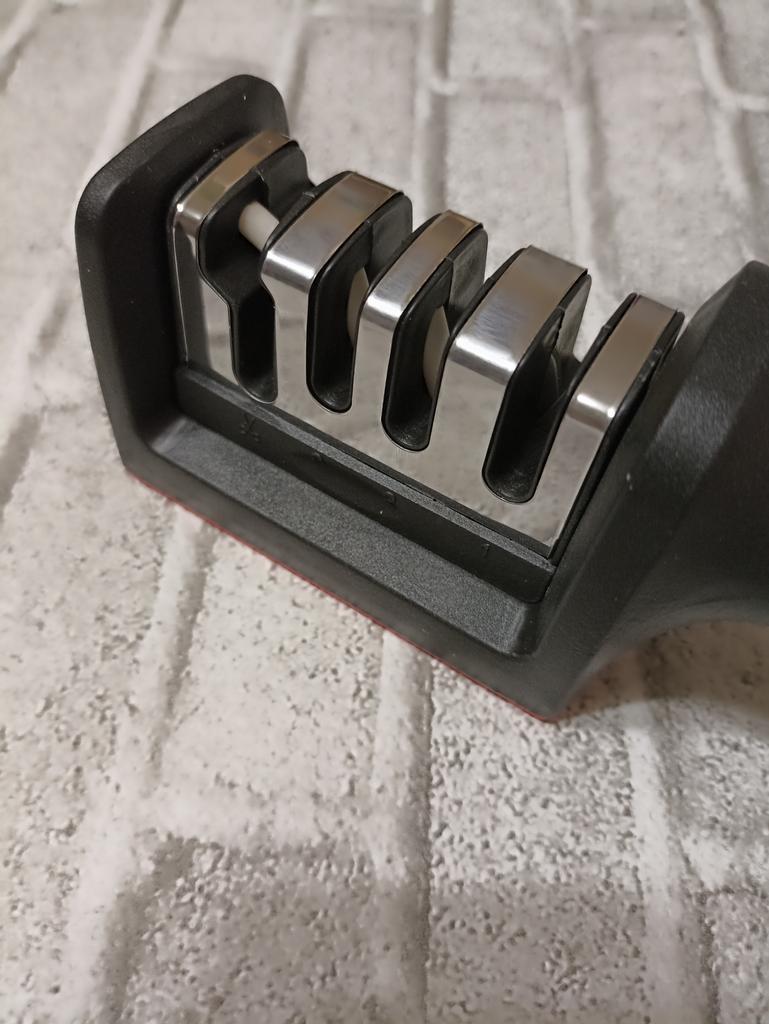 UNIVERSAL MANUAL SHARPENER FOR KNIVES AND SCISSORS👍 Has four slots for sharpening. The first slot is intended for coarse sharpening of knives, the second - for medium, the third - for fine. Fourth slot for sharpening scissors. It has a compact size and light weight, made of durable ABS plastic. The body has an ergonomic handle with a comfortable hand grip, a removable sharpening slot, and rubberized inserts on the bottom that prevent the device from sliding on the surface.. Completely easy to use, you just need to place the blade in the slot with the tip pointing down, swiping it towards you several times. Great sharpener👌 Recommend⭐