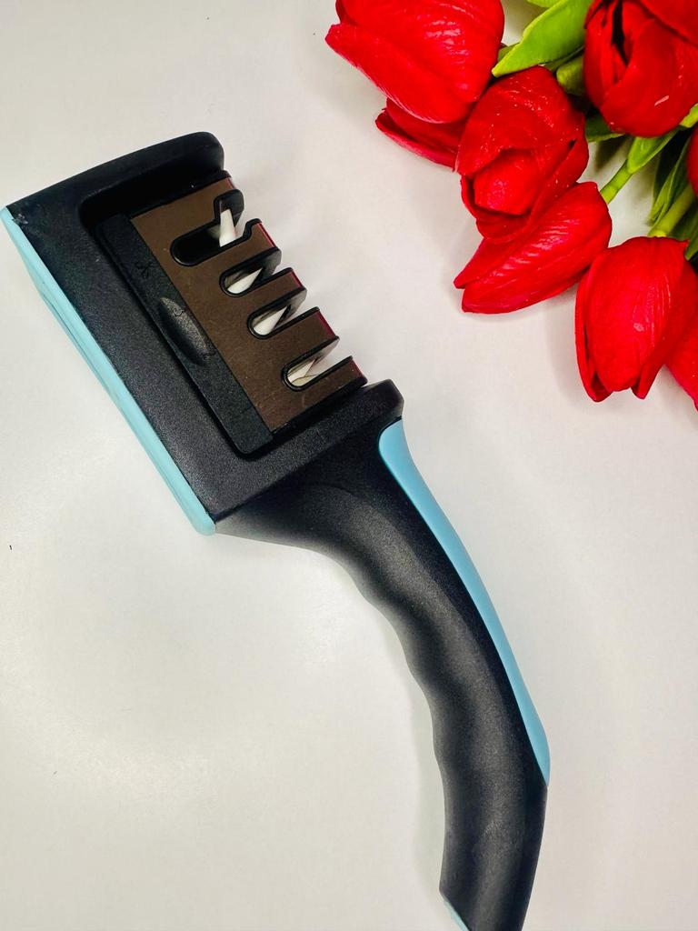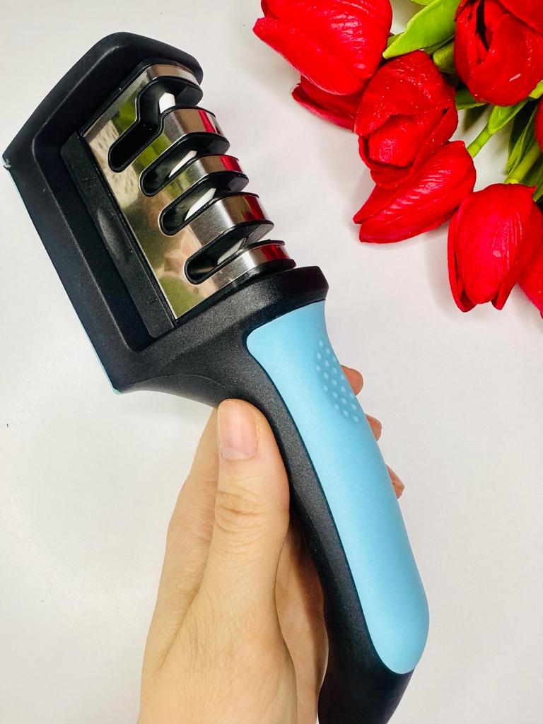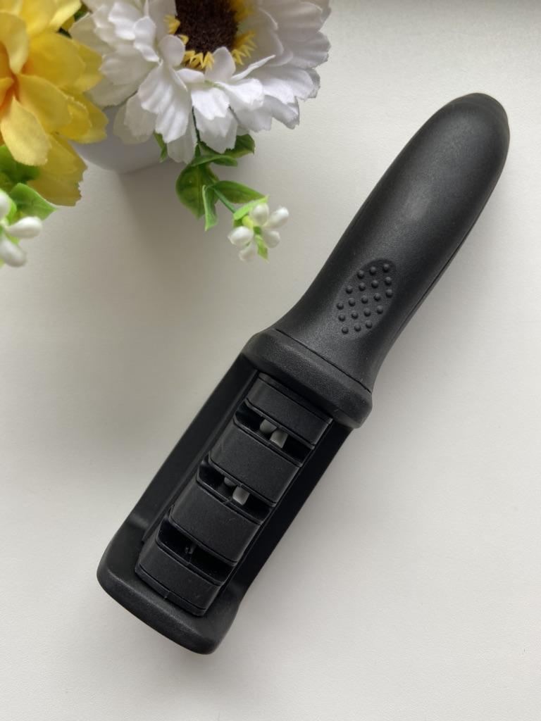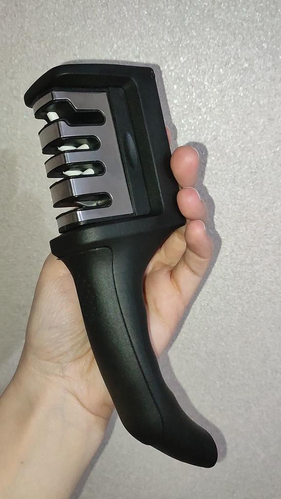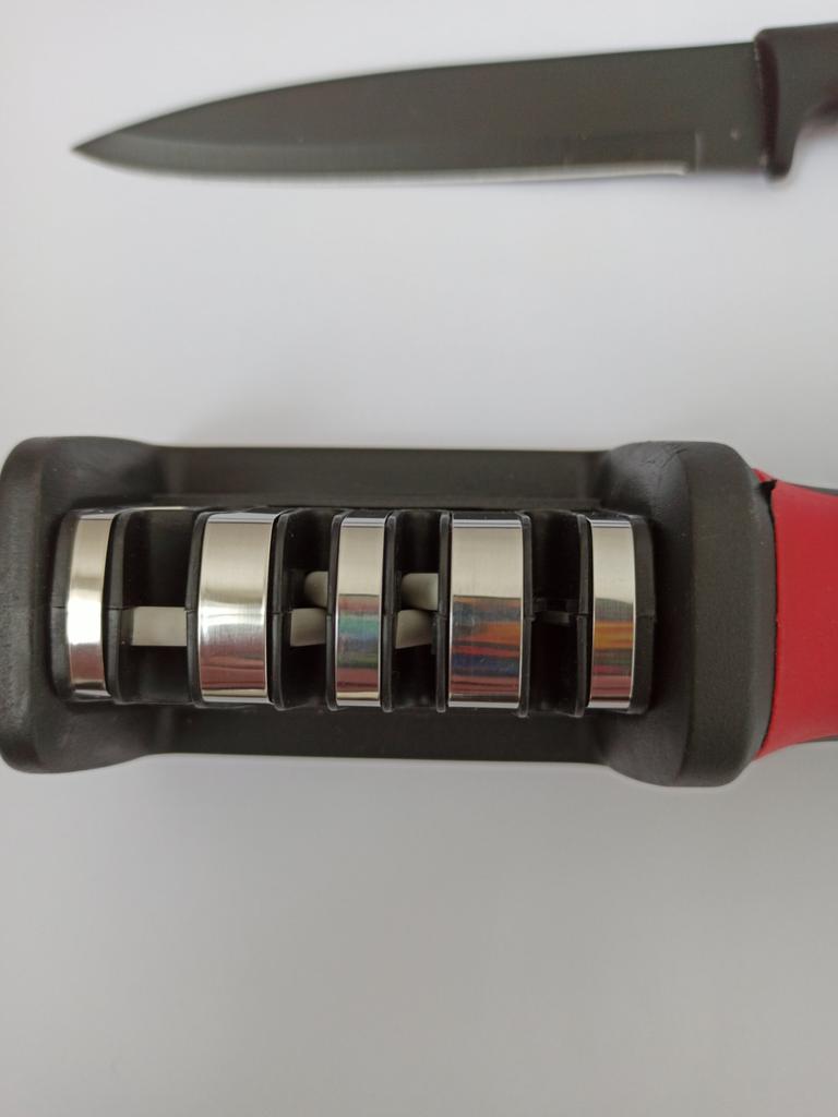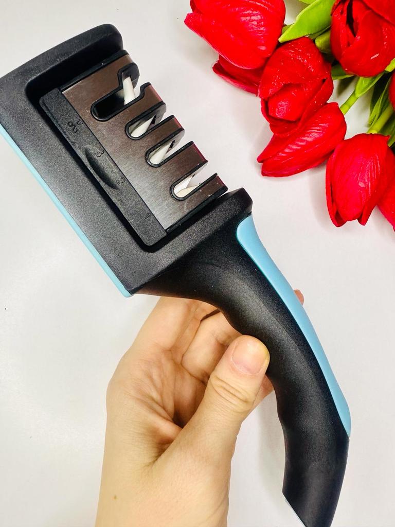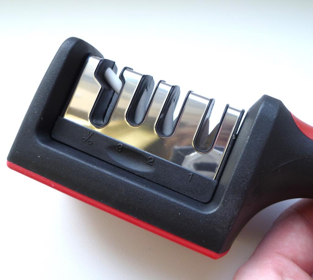 UNIVERSAL MANUAL SHARPENER FOR KNIVES AND SCISSORS👍 Has four slots for sharpening. The first slot is intended for coarse sharpening of knives, the second - for medium, the third - for fine. Fourth slot for sharpening scissors. It has a compact size and light weight, made of durable ABS plastic. The body has an ergonomic handle with a comfortable hand grip, a removable sharpening slot, and rubberized inserts on the bottom that prevent the device from sliding on the surface.. Completely easy to use, you just need to place the blade in the slot with the tip pointing down, swiping it towards you several times. Great sharpener👌 Recommend⭐