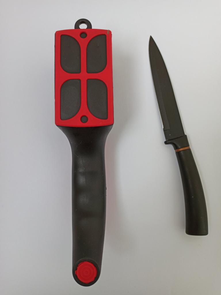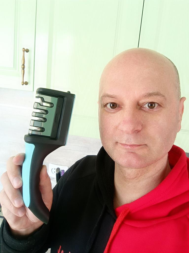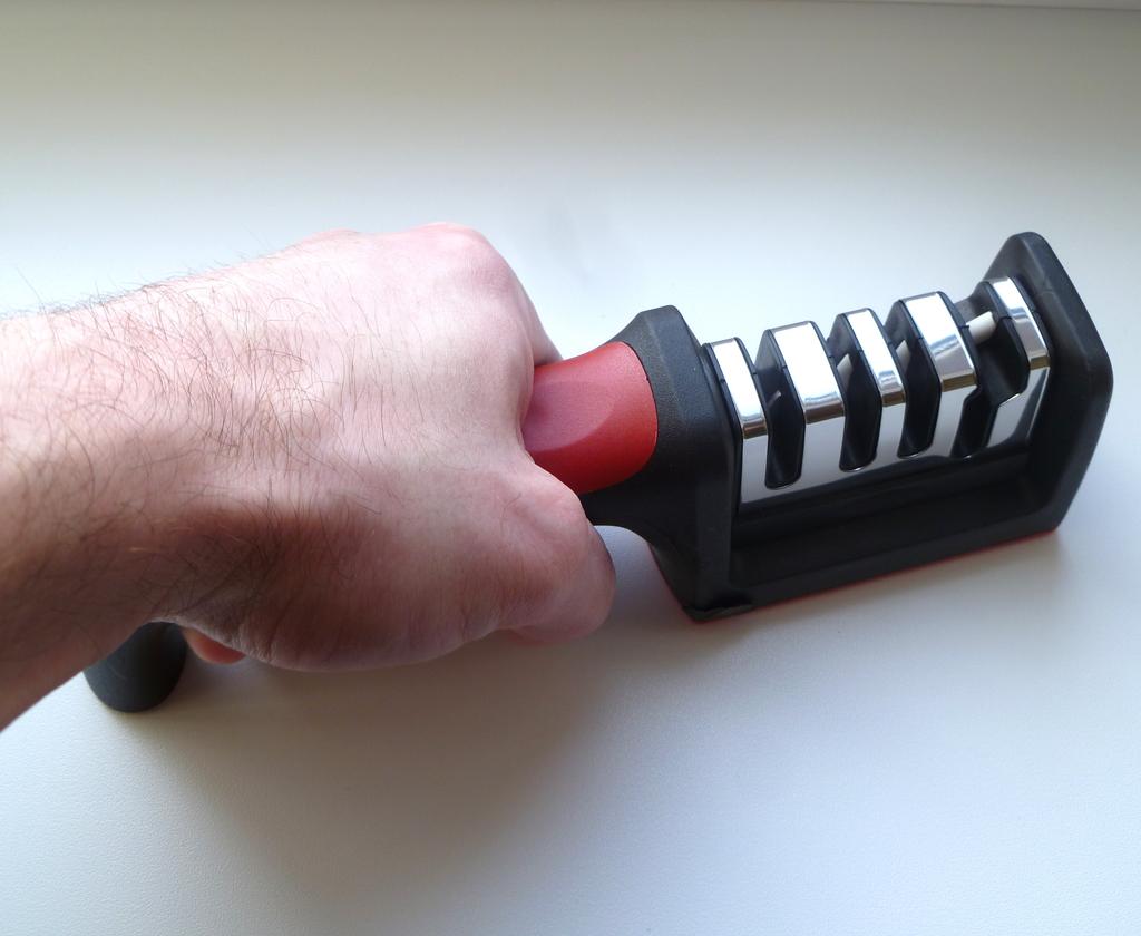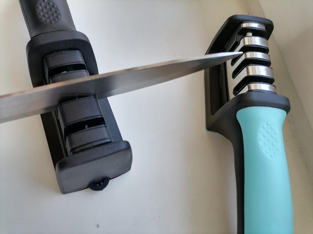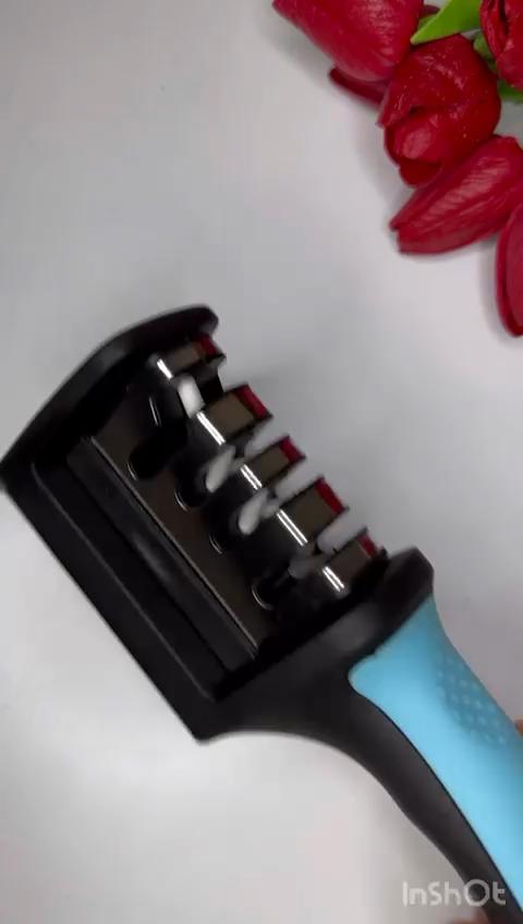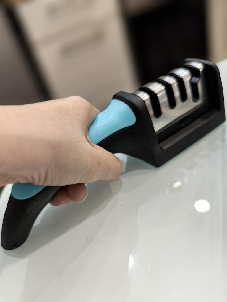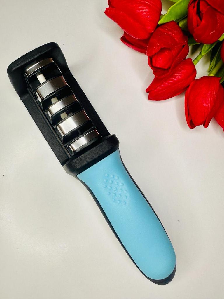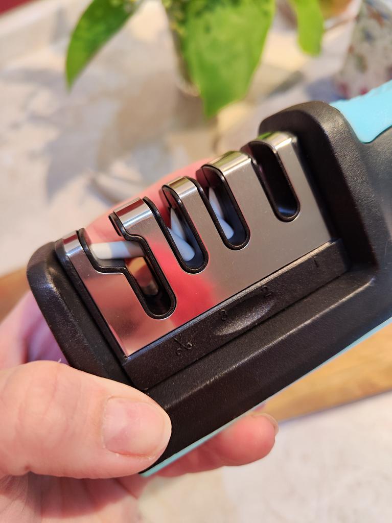 UNIVERSAL MANUAL SHARPENER FOR KNIVES AND SCISSORS👍 Has four slots for sharpening. The first slot is intended for coarse sharpening of knives, the second - for medium, the third - for fine. Fourth slot for sharpening scissors. It has a compact size and light weight, made of durable ABS plastic. The body has an ergonomic handle with a comfortable hand grip, a removable sharpening slot, and rubberized inserts on the bottom that prevent the device from sliding on the surface.. Completely easy to use, you just need to place the blade in the slot with the tip pointing down, swiping it towards you several times. Great sharpener👌 Recommend⭐