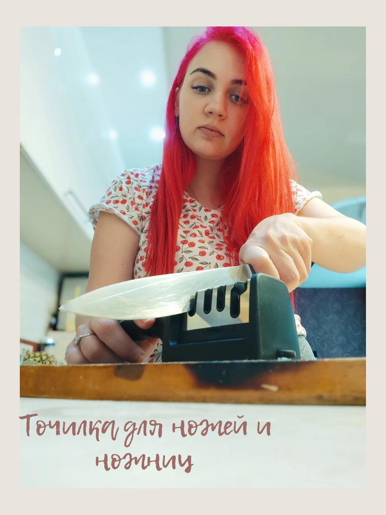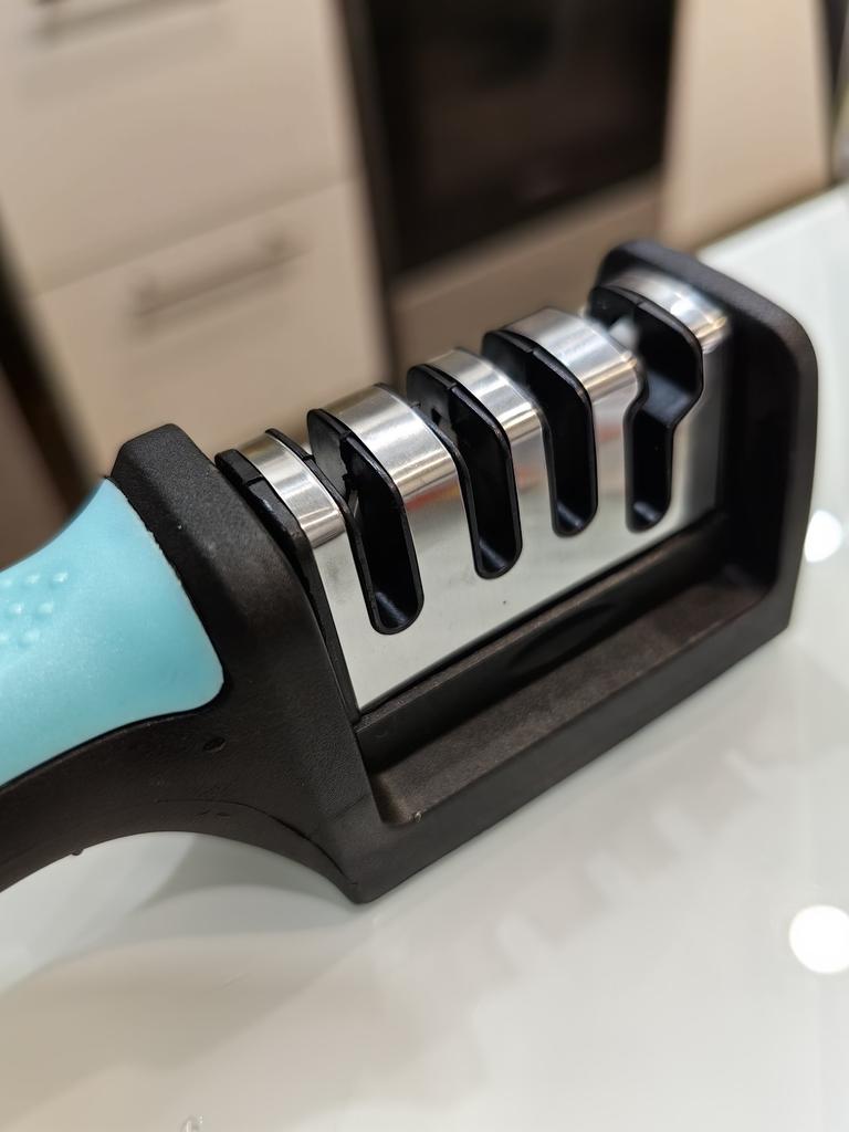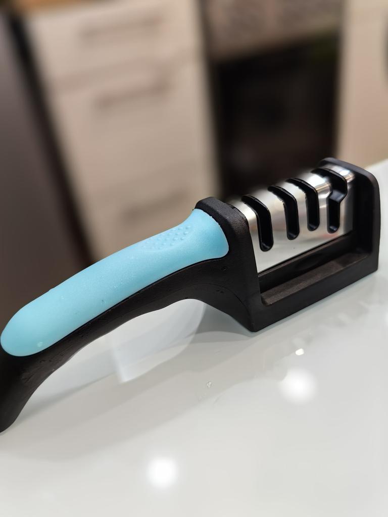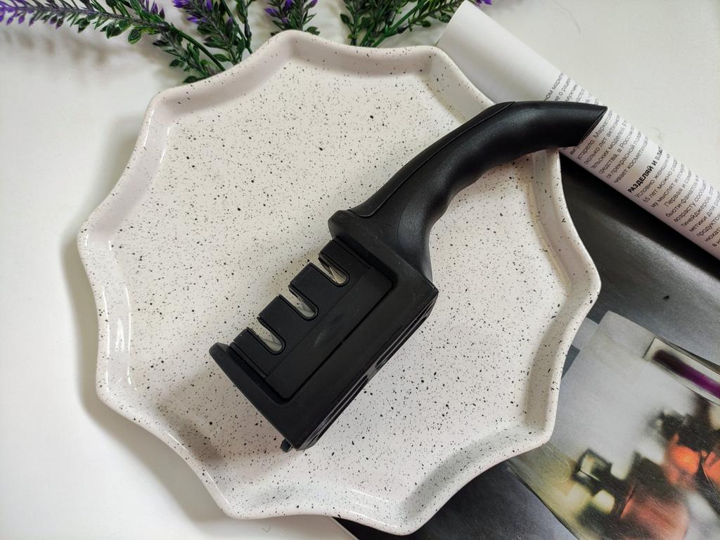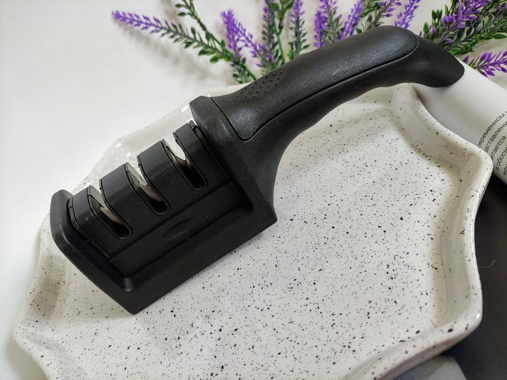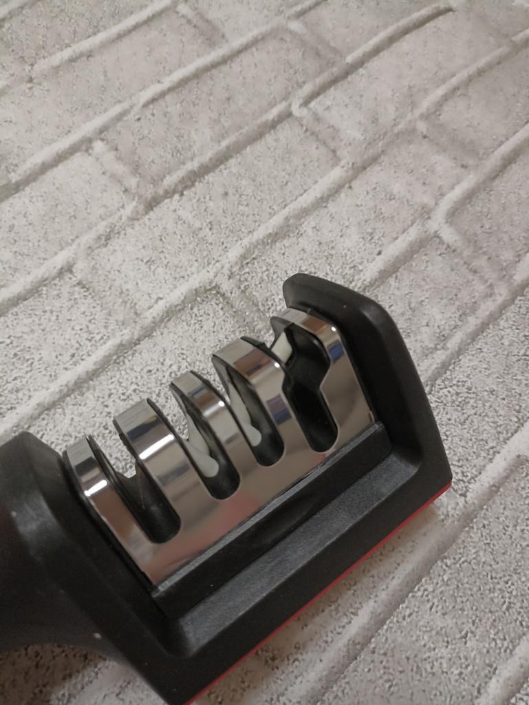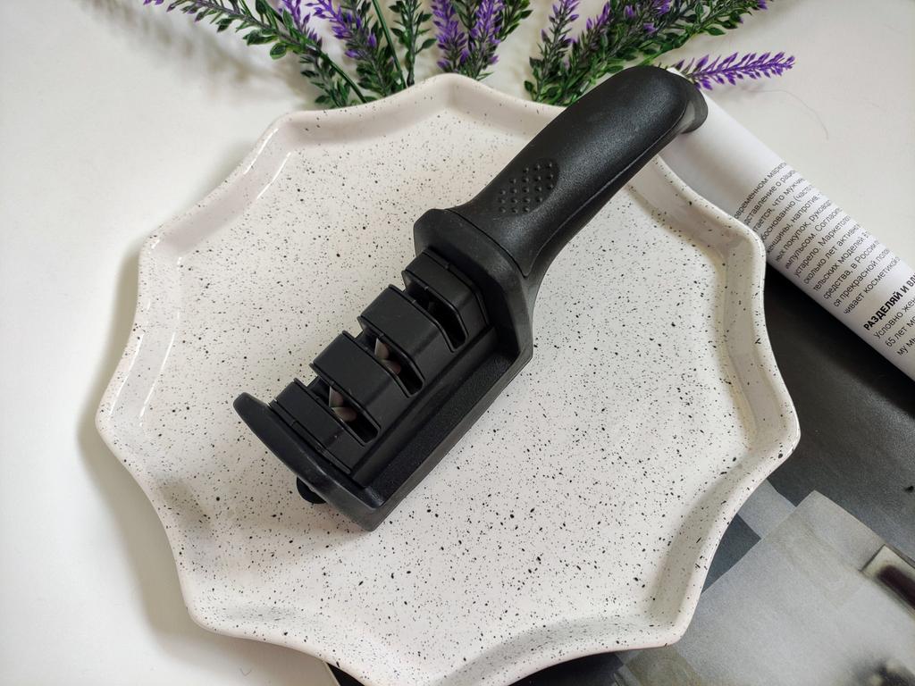 Sharpener for knives and kitchen scissors from TIHUAT Kitchenware! ✈️ The parcel took less than a month to Moldova. ✅Material: plastic body, metal . ✅ 3 reps. for sharpening knives and 1 hole. for sharpening scissors ✅Comfortable handle and silicone bottom to prevent the sharpener from slipping. ✅Excellent quality! ✅I’m happy with the purchase and definitely recommend it for purchase ❤️