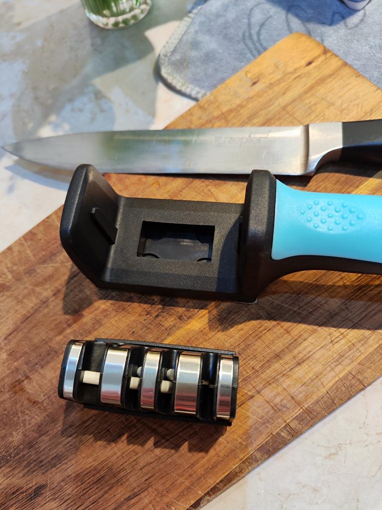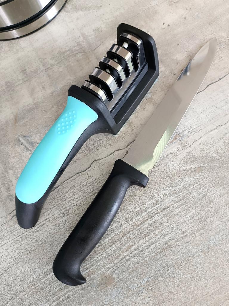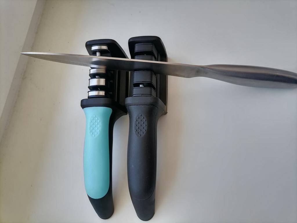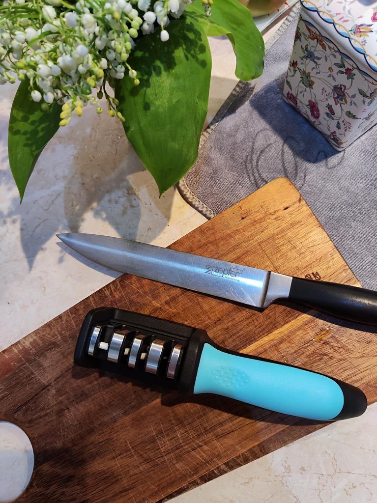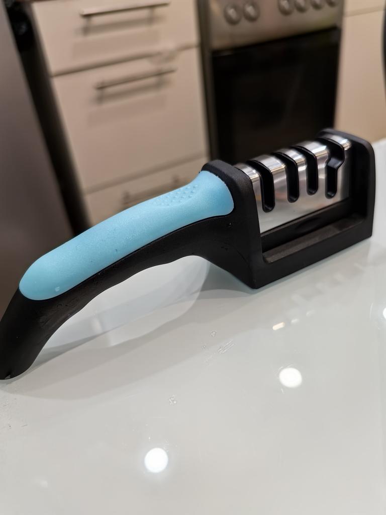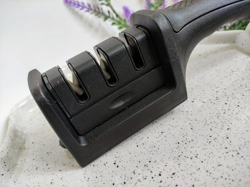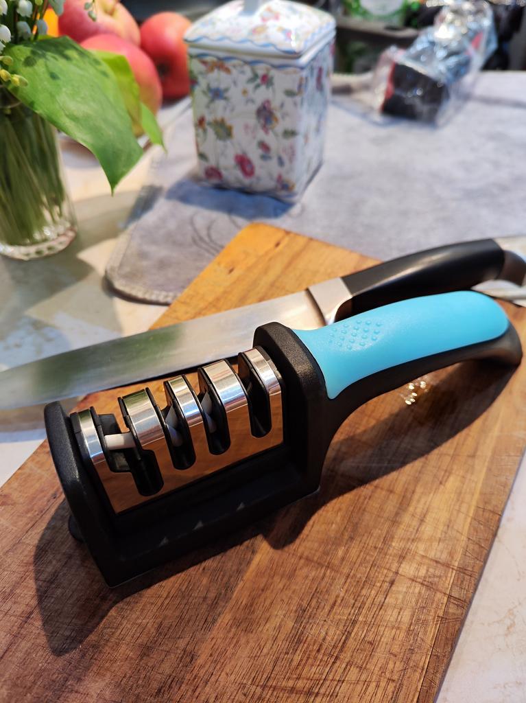Sharpener for knives and kitchen scissors from TIHUAT Kitchenware! ✈️ The parcel took less than a month to Moldova. ✅Material: plastic body, metal . ✅ 3 reps. for sharpening knives and 1 hole. for sharpening scissors ✅Comfortable handle and silicone bottom to prevent the sharpener from slipping. ✅Excellent quality! ✅I’m happy with the purchase and definitely recommend it for purchase ❤️