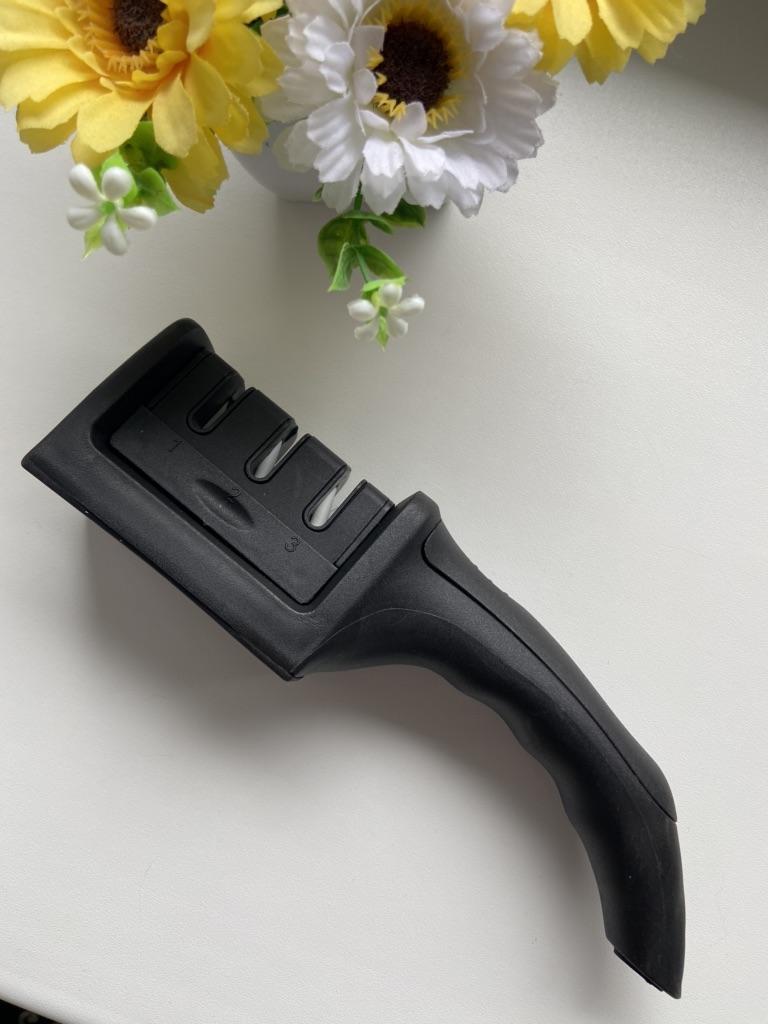 Device for sharpening knives and scissors from the TIHUAT KITCHENWARE store. 🥘 #03 This is not the first time I buy such a device. At first I tried it myself (very convenient stuff ☺️) now I recommend it to my loved ones 😉. The seller has different options for the sharpener, so you can choose the one that suits your hand, and you can also choose the color that suits you best I chose the black color and sharpened for 4 slots. The device is convenient and easy to use: There are 4 working slots (slots) on the sharpener: the first for scissors ✂️ and three slots for sharpening knives: coarse (rough) sharpening, ruler (intermediate) and sharp (fine). To sharpen, insert the knife into the slot and make a movement towards you and so on several times until the result satisfies us (all movements in the same direction). After sharpening, the knife must be carefully (!) washed with warm water with the addition of dishwashing detergent. The sharpener cannot be washed in a dishwasher. The device has a comfortable handle and a non-slip bottom. And there is also a hole for hanging on a hook 😊 A wonderful kitchen gadget 🔪🍠🧅. I recommend 😉 🛒 I am adding enough photos + videos to make it easier for you to decide 📸🎥 If the information was useful, put it as a favorite ❤️😘 I received the product in 21 days by "New Mail" for free (!) 🚀🚀🚀 The track was tracked completely. The arrival at the point of issue was announced by sms 📲. Packaging: bubble bag and individual packaging. Everything arrived intact. Goods without defects. Happy shopping and fast deliveries to everyone 🛍️☺️🚀🌷