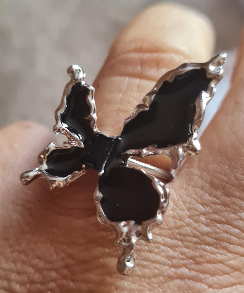 Black Butterfly Iron Bone Fun Exaggerated Adjustable Ring