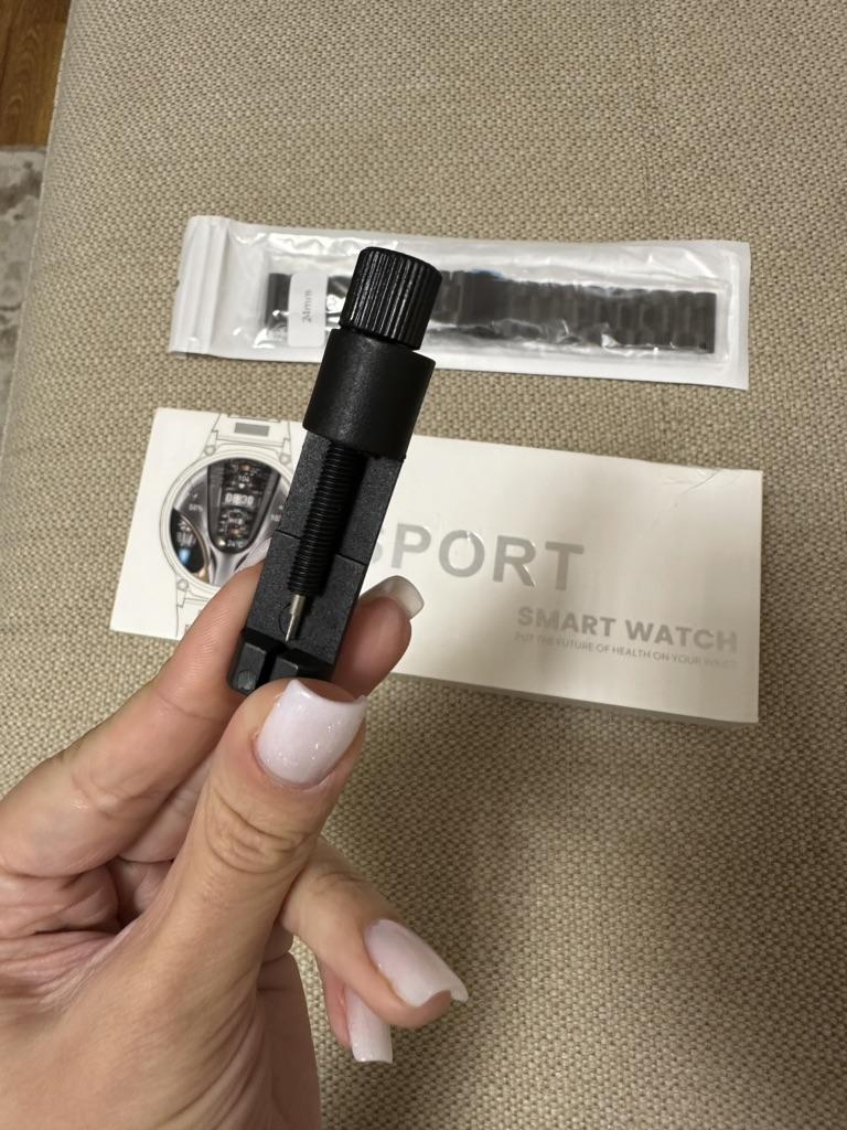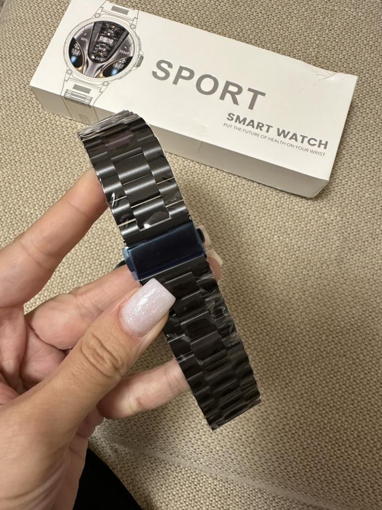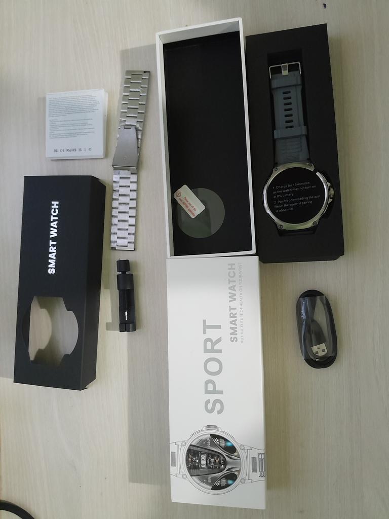 **Smart watch ⌚ . The arrival time in Spain was well wrapped . ⌚Contains: 1 watch, 2 bracelets, 1 charger, 1 manual, 1 tool. To connect your mobile phone to the watch you have to download the application, scanning the QR code that appears in the instruction manual takes you directly to the application (you download it in your language) . You activate the bluetooth of your mobile phone and the location, and within the app you click on adding a device, you connect the bracelet. . Among the functions of the watch is monitoring calls 📱📞 messages ✉️, sleep rhythm, sports, you can change the wallpaper of the watch, it has an option, in case you don't remember where you left your phone, click on a section on the bracelet and the phone automatically starts beeping, it has an alarm clock, the weather. . The rubber strap is very very comfortable, and you can also put on the silver strap for when you go out more dressed up. . Bring a tool so you can remove pieces from the silver strap. 😁🙏🏻 It also comes with a piece of plastic to put on the screen as a protector. . ⌚ HAPPY SHOPPING 🤎 ⌚