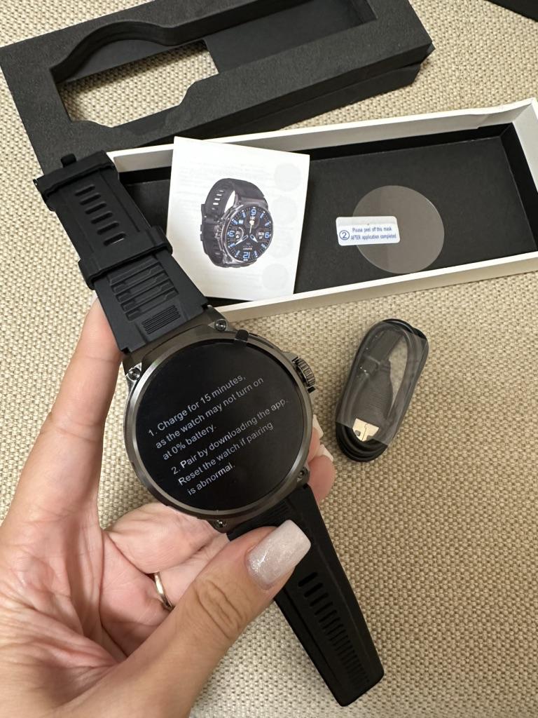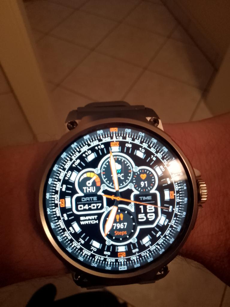 It looks very good, the quality of workmanship, the presentation of the display image, first class, you have to pair it with the phone to have access to the full possibilities, without pairing it doesn't even work the option to set the date or time, for now, after using it for the second day, the battery has 80%, this is probably a pretty good result considering that I played with it a lot. Large screen and large dimensions, but I am positively surprised so far