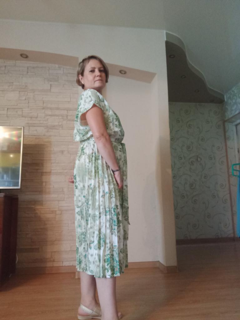 Cute dress with floral print. 👍! Delivery time 🌞:31 days to Germany. ♻️Scope of delivery: The delivery includes a dress 👗 in the appropriate color and size. The product is available in 10 colors. It is available in sizes S to L. I ordered the product in size S in mint green and the dress 👗 fits me perfectly and the color is exactly as shown. 🤗🤗🤗👍 I normally wear dress size 36 (S). I weigh 55kg and am 167cm tall. The dress is true to size. 🌞Quality ♻️: The dress is light and swings beautifully. Beautiful pleats!!! ✅️👍The fabric is very pleasant on the skin. The product has a small O-neck, which I really like. The elastic at the waist accentuates the figure. The dress 👗is opaque. , with a matching belt. Perfect!👌👌👌👌It's great for spring and summer. I liked the pattern of the dress best, this beautiful floral print. I also think the wicked cap sleeves on the shoulders are unusual and beautiful.👍👍👍 The dress has a lovely A-line fit. ✅️Material composition: 100% polyester. But the material is very comfortable on the skin. The dress reaches about mid-calf on me. ✳️Summary ✳️: A beautiful short-sleeved dress 👗with the belt that you can order in your normal size. I would very much recommend the product. 5 stars 👍👍👍👍! Thank you Joom and the seller!!!🤗🤗🤗👗👍And thank you for a little gift for the hairband 👍🙏🍒