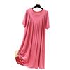 Women Night Dress Pleated Thin Round Neck Short Sleeves Loose Sleeping Solid Color Knee Length Sleepwear Home Dress Women Clothes